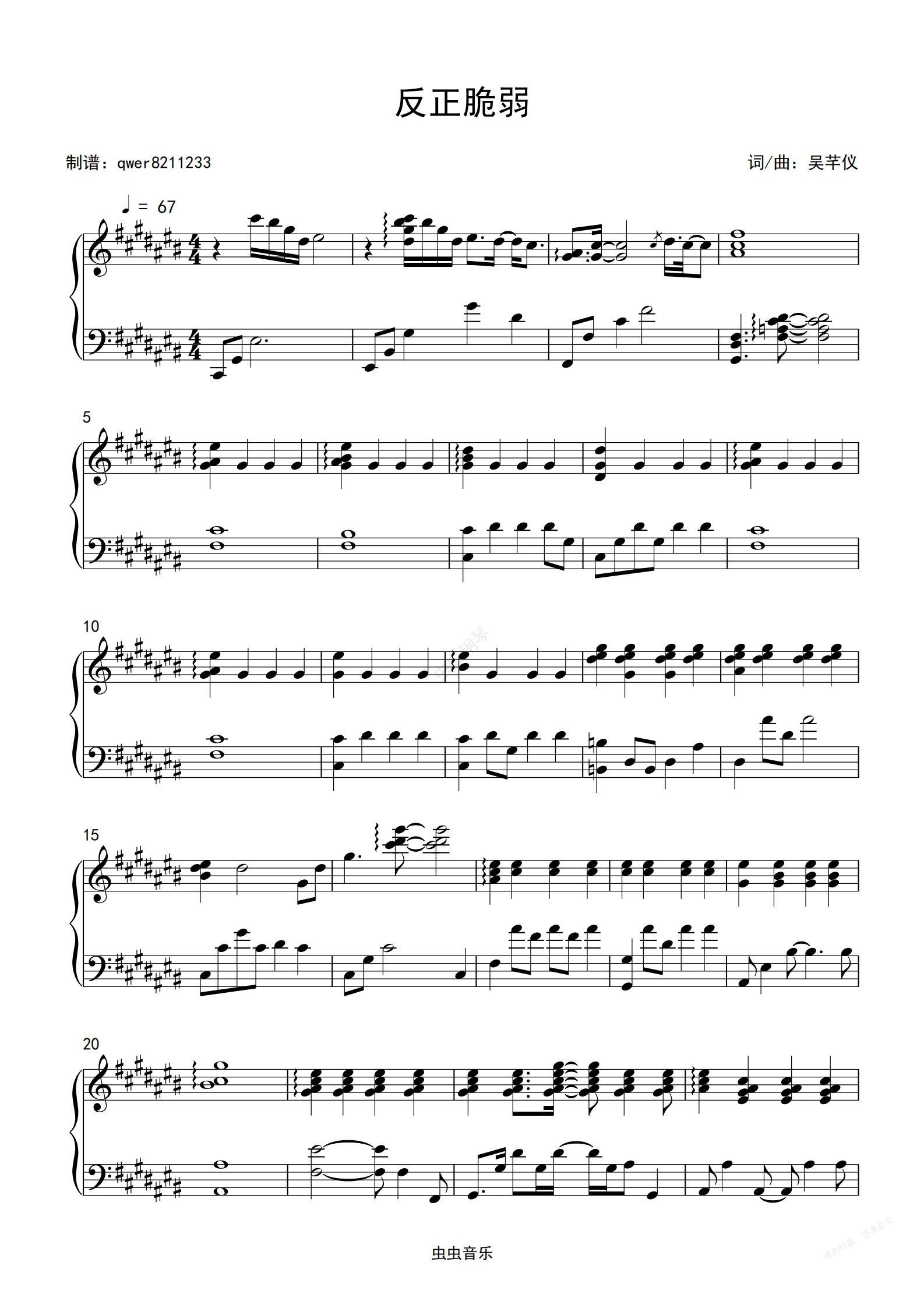 钢琴谱:反正脆弱