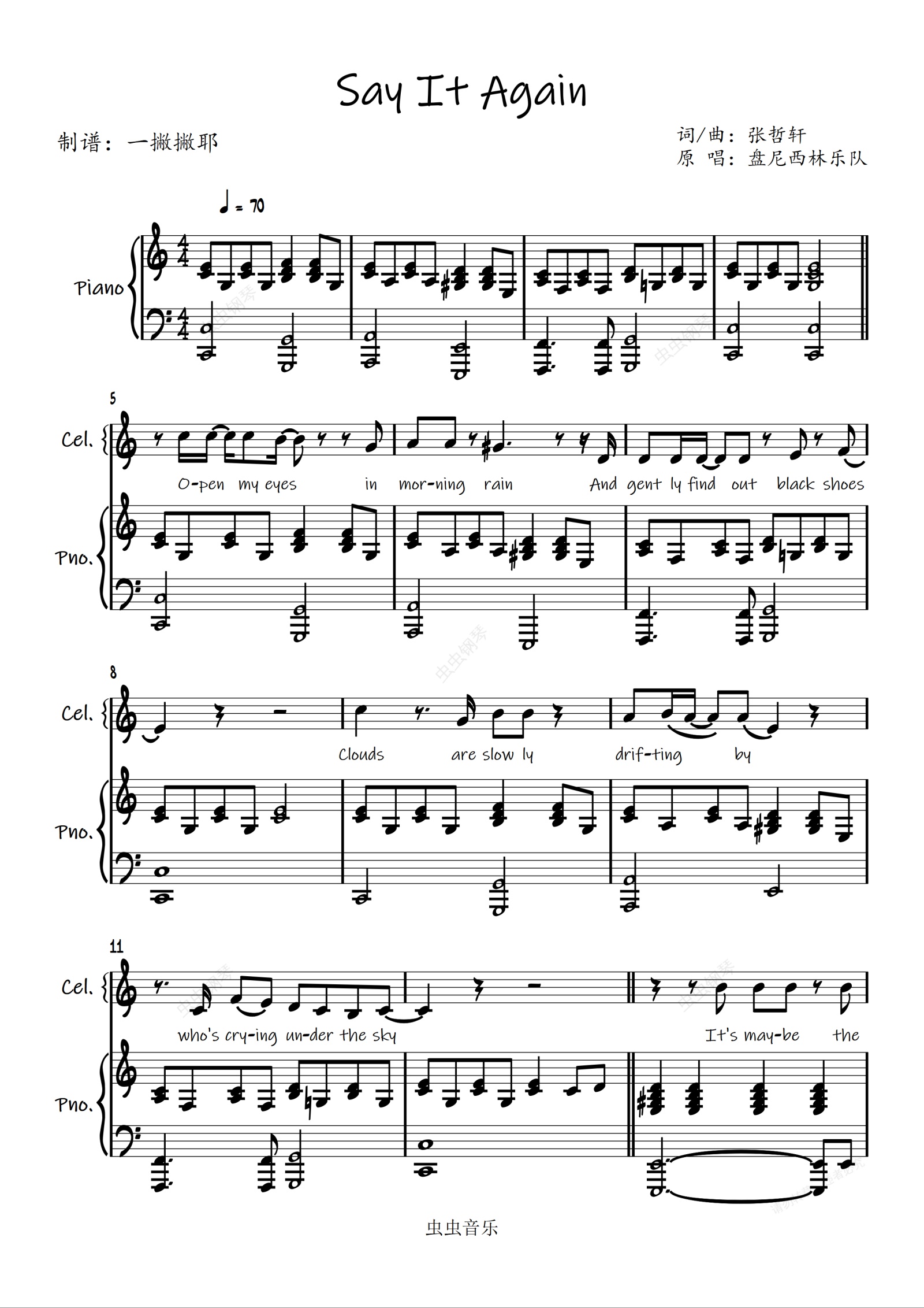 钢琴谱:【弹唱谱】Say It Again(再谈记忆)-盘尼西林乐队「一撇撇耶」