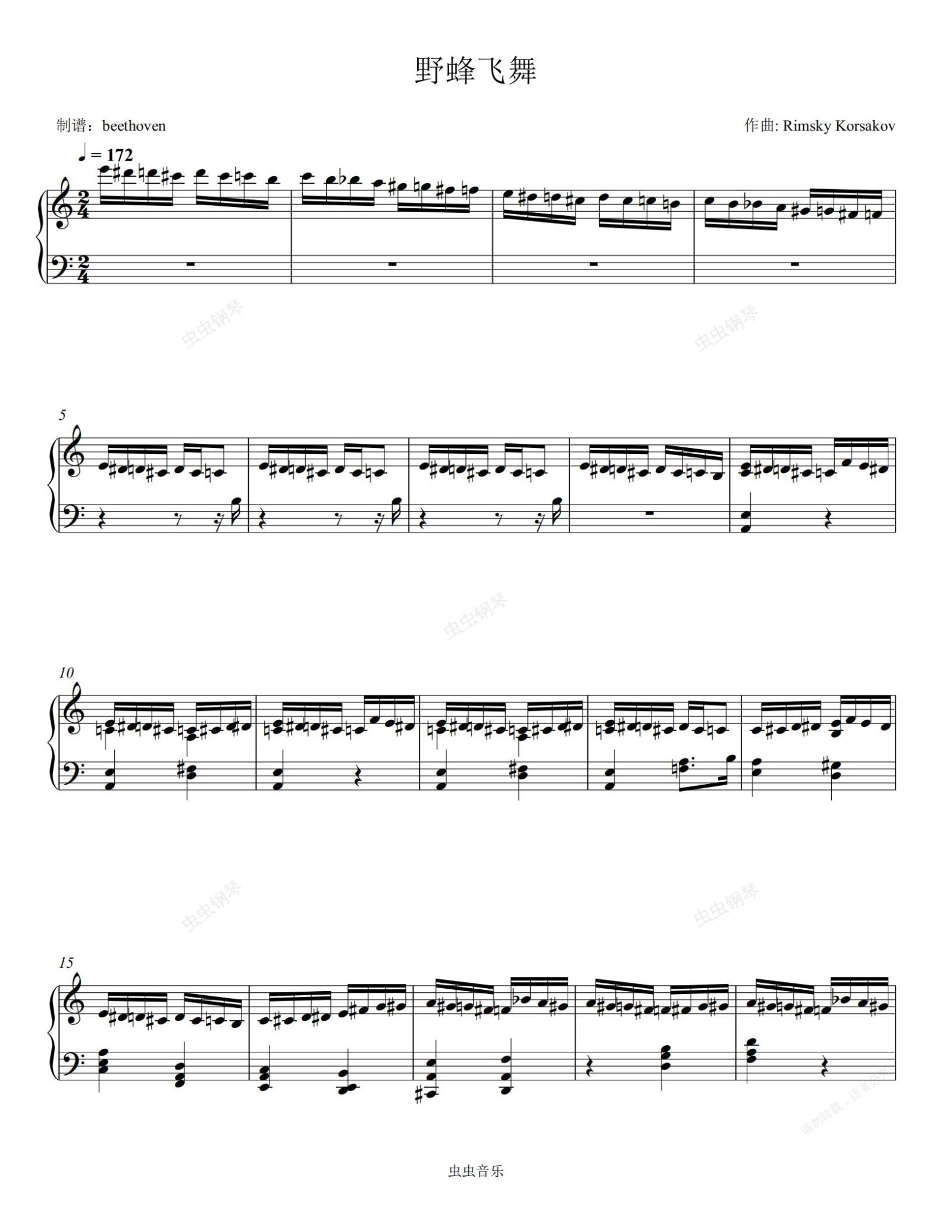 钢琴谱:野蜂飞舞(钢琴独奏) 马克西姆