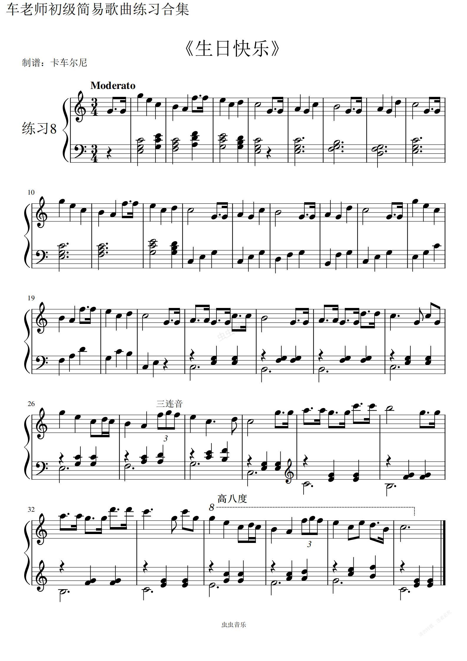 钢琴谱:简易歌曲练习8 生日快乐歌
