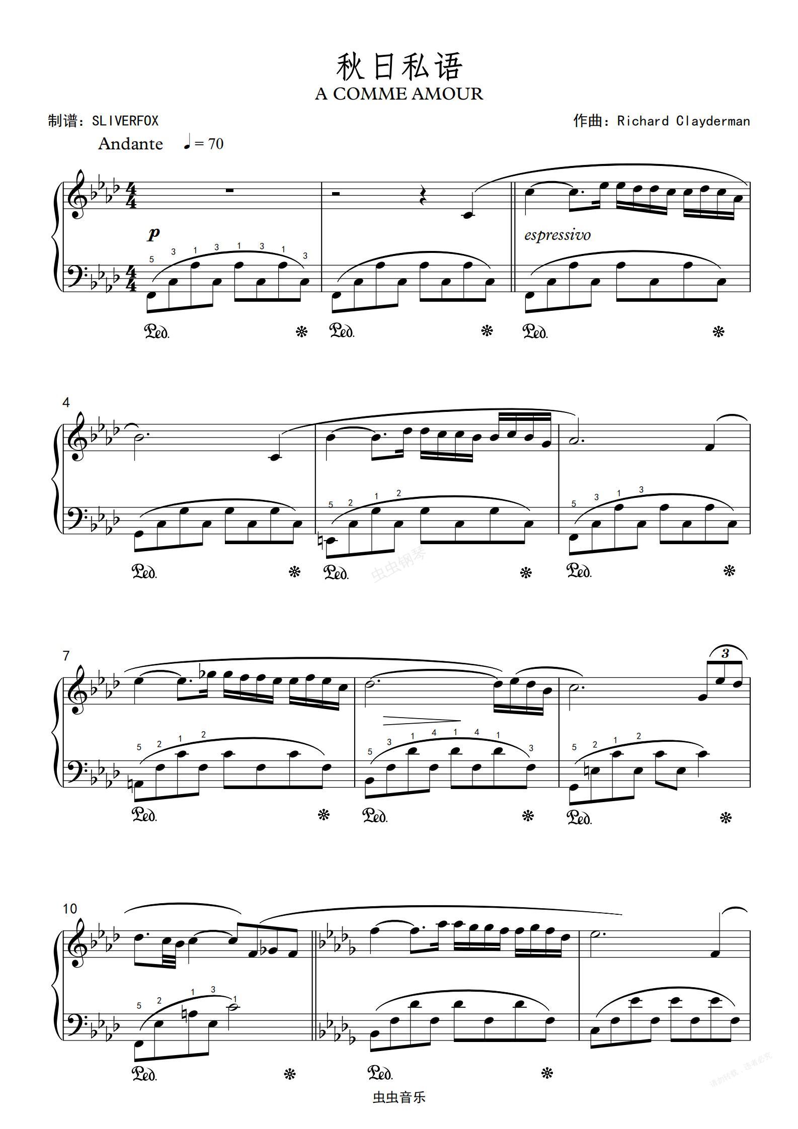 钢琴谱:秋日私语 理查德克莱德曼 轻音乐初级指法版