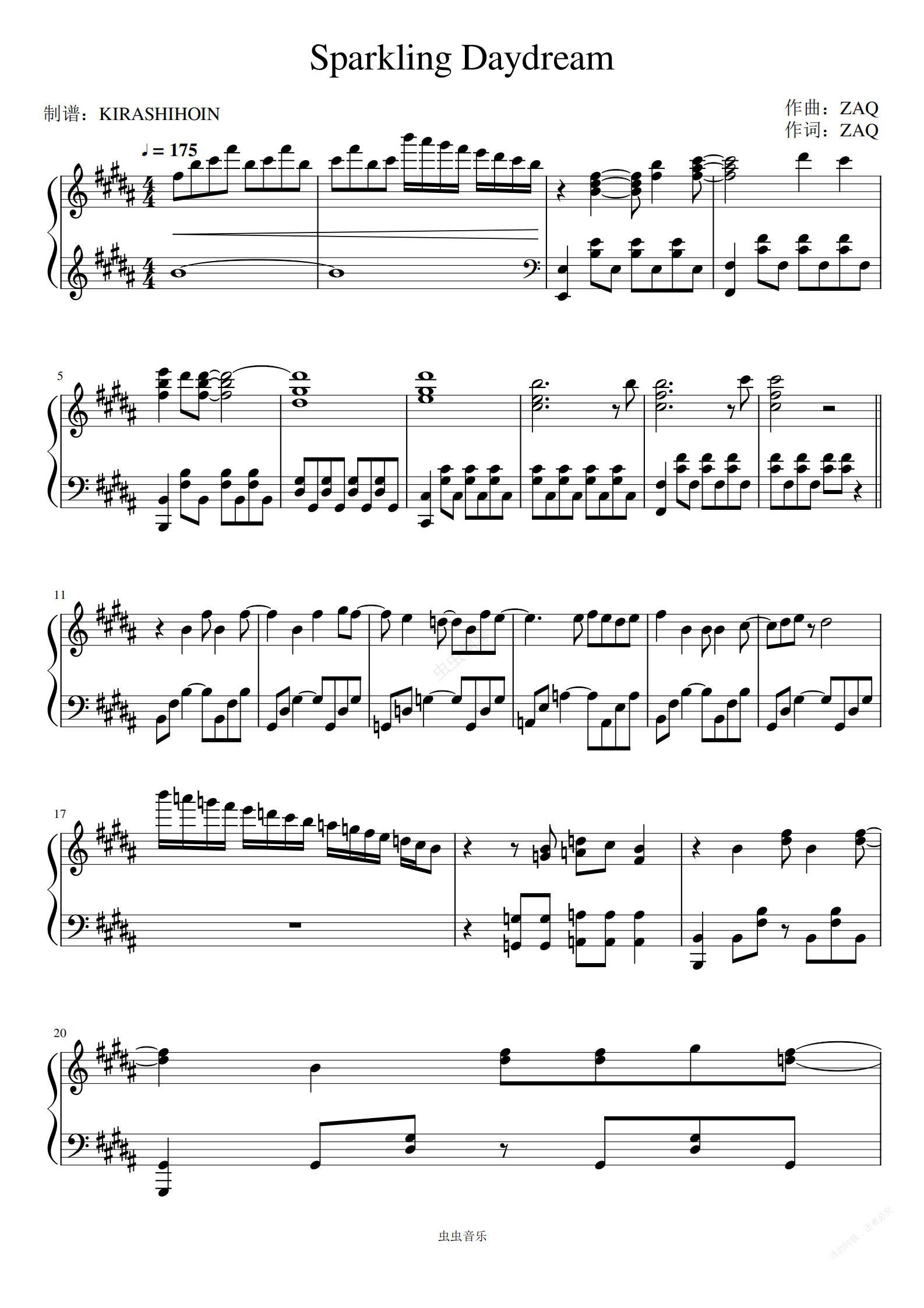 钢琴谱:Sparkling Daydream(《中二病也要谈恋爱!》OP)