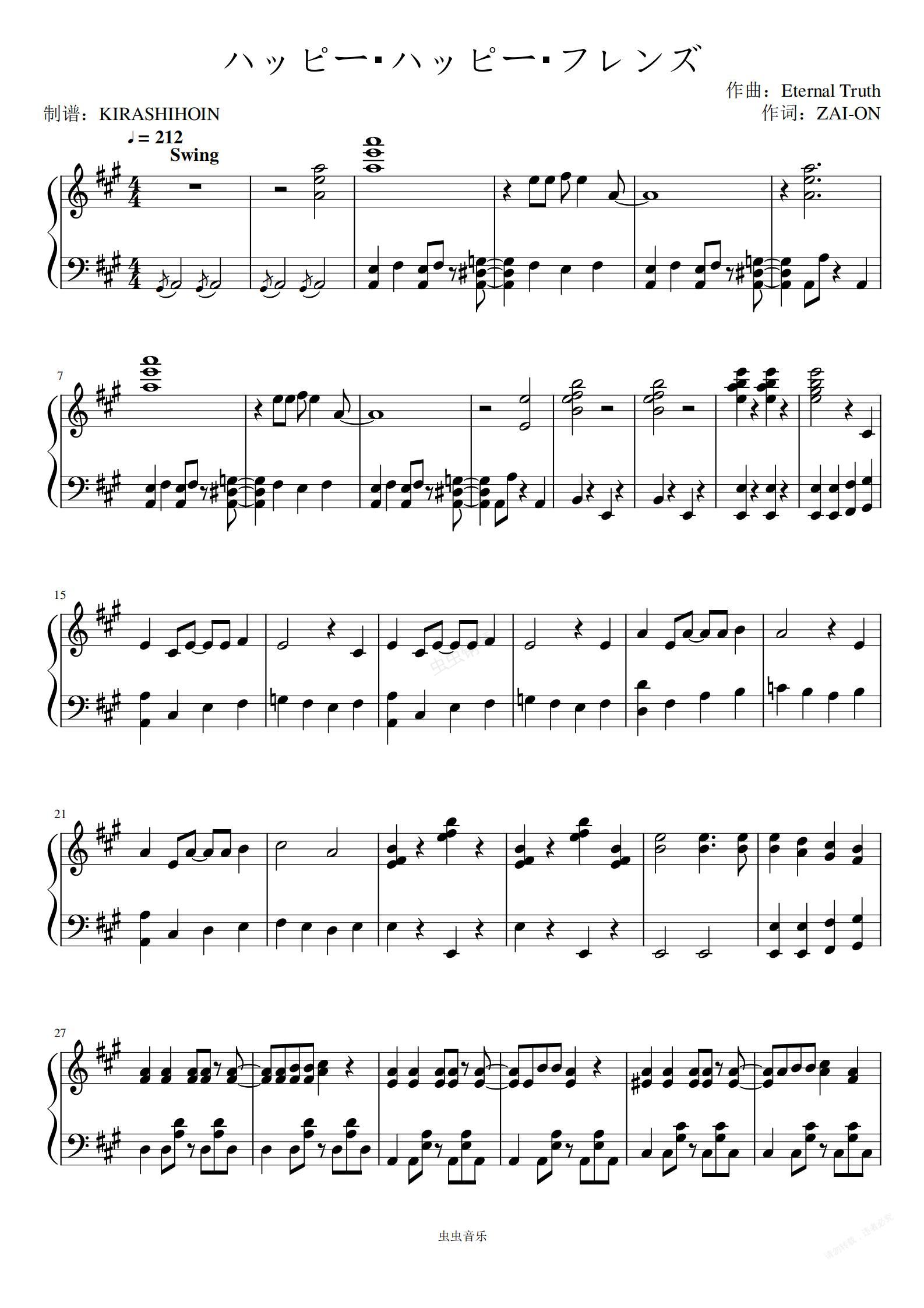 钢琴谱:ハッピー・ハッピー・フレンズ(《天使降临到我身边!》ED)