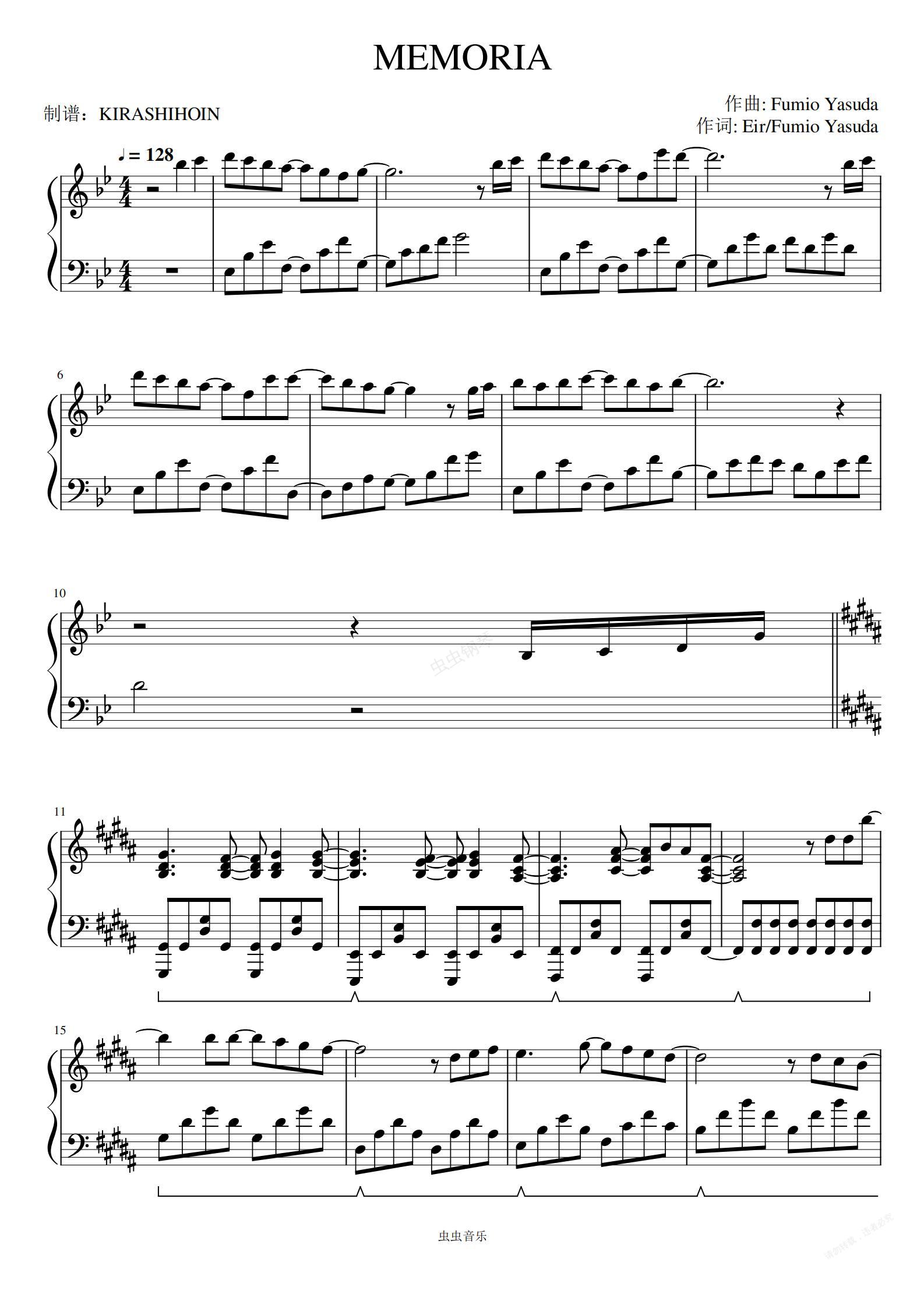 钢琴谱:MEMORIA(《Fate/Zero》ED)