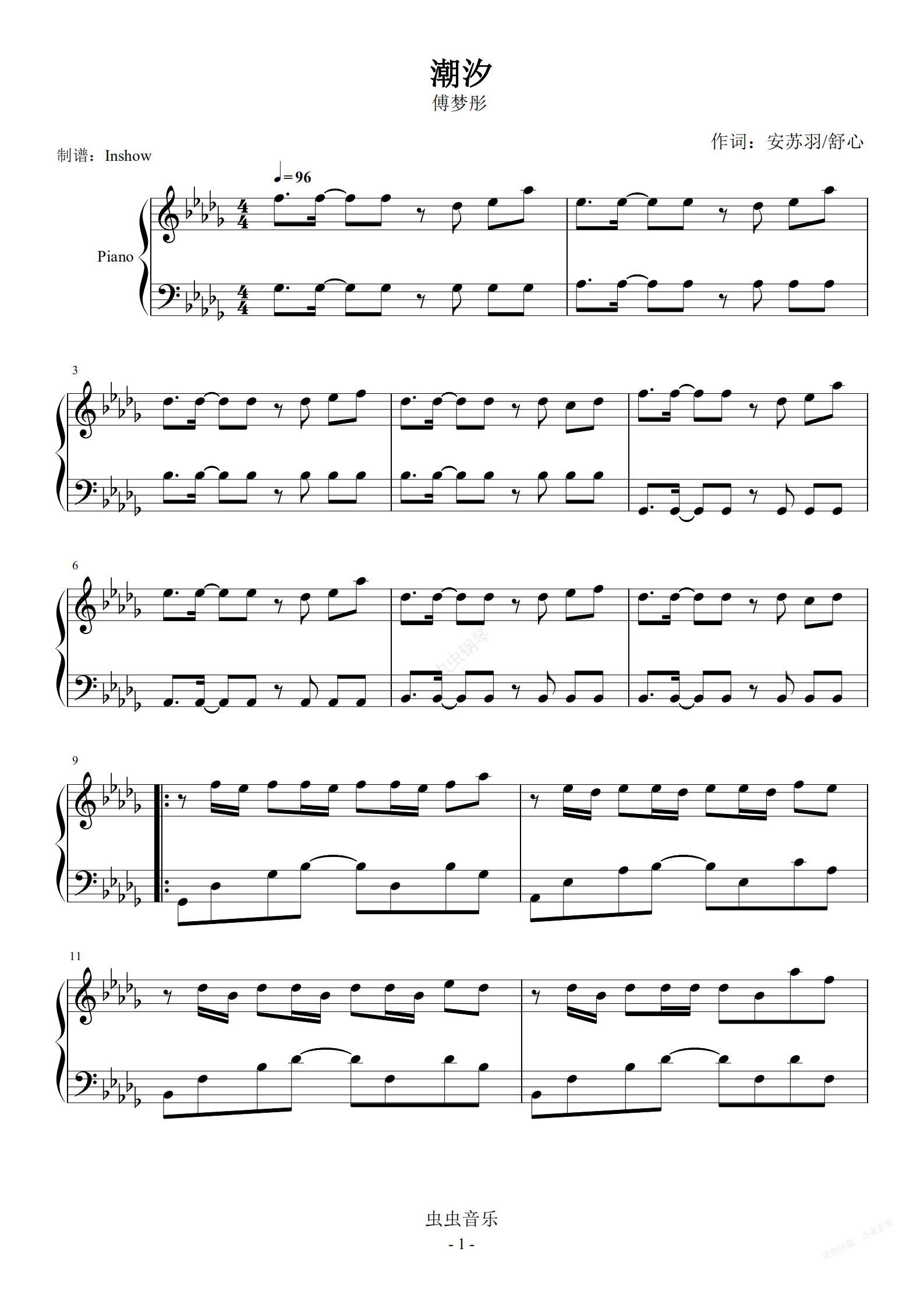 钢琴谱:潮汐 【独奏】- 傅梦彤
