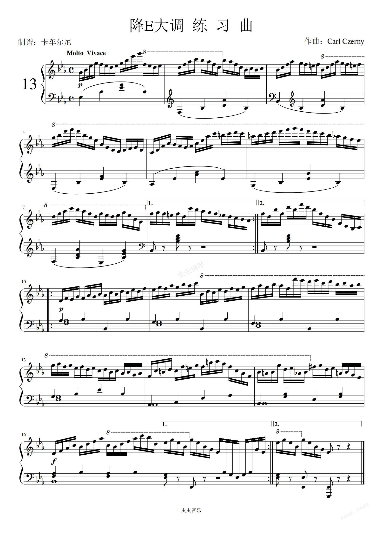 钢琴谱:车尔尼 降E大调练习曲 Op.818 No.13