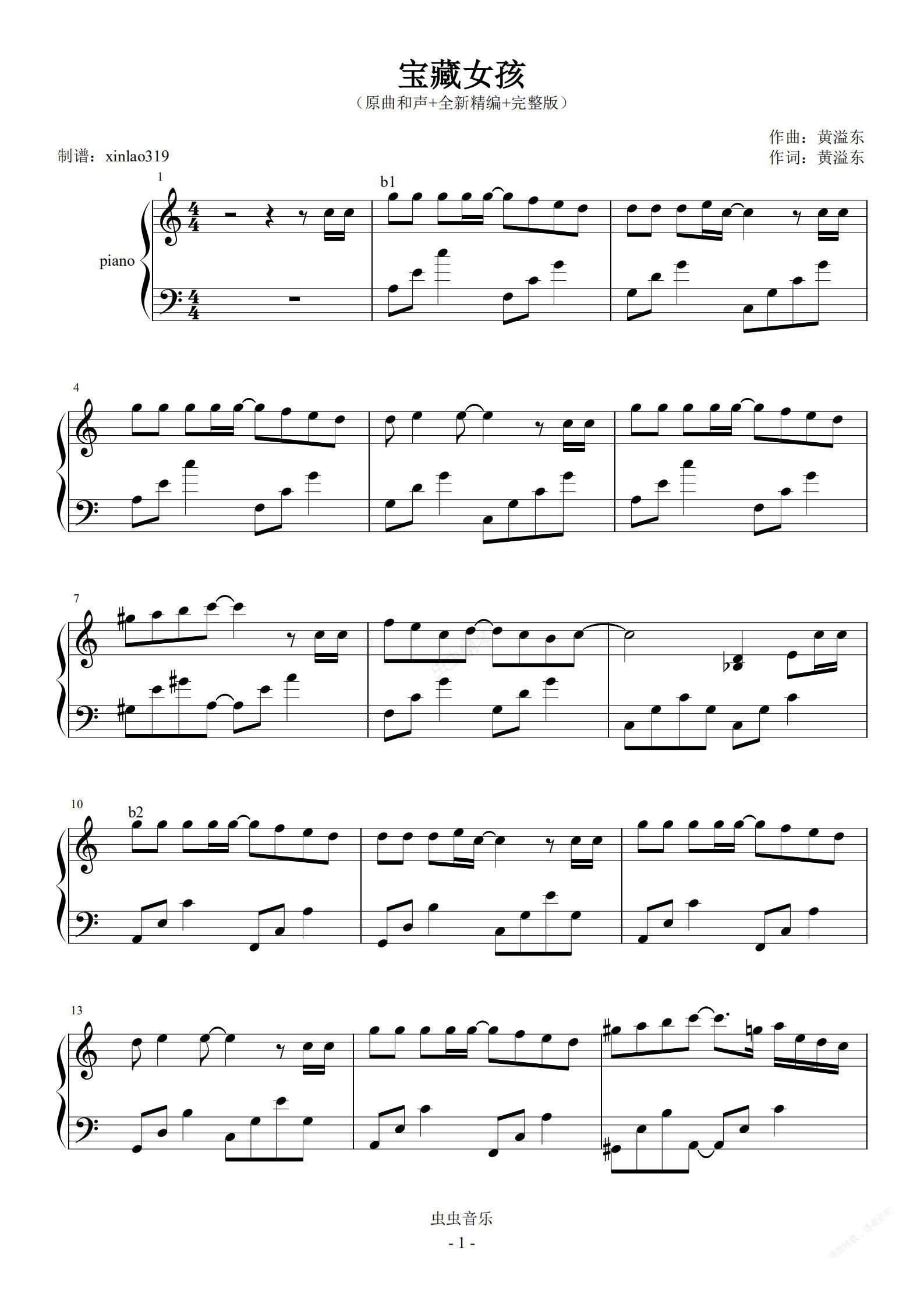 钢琴谱:宝藏女孩-C-(原曲和声+全新精编+完整版)