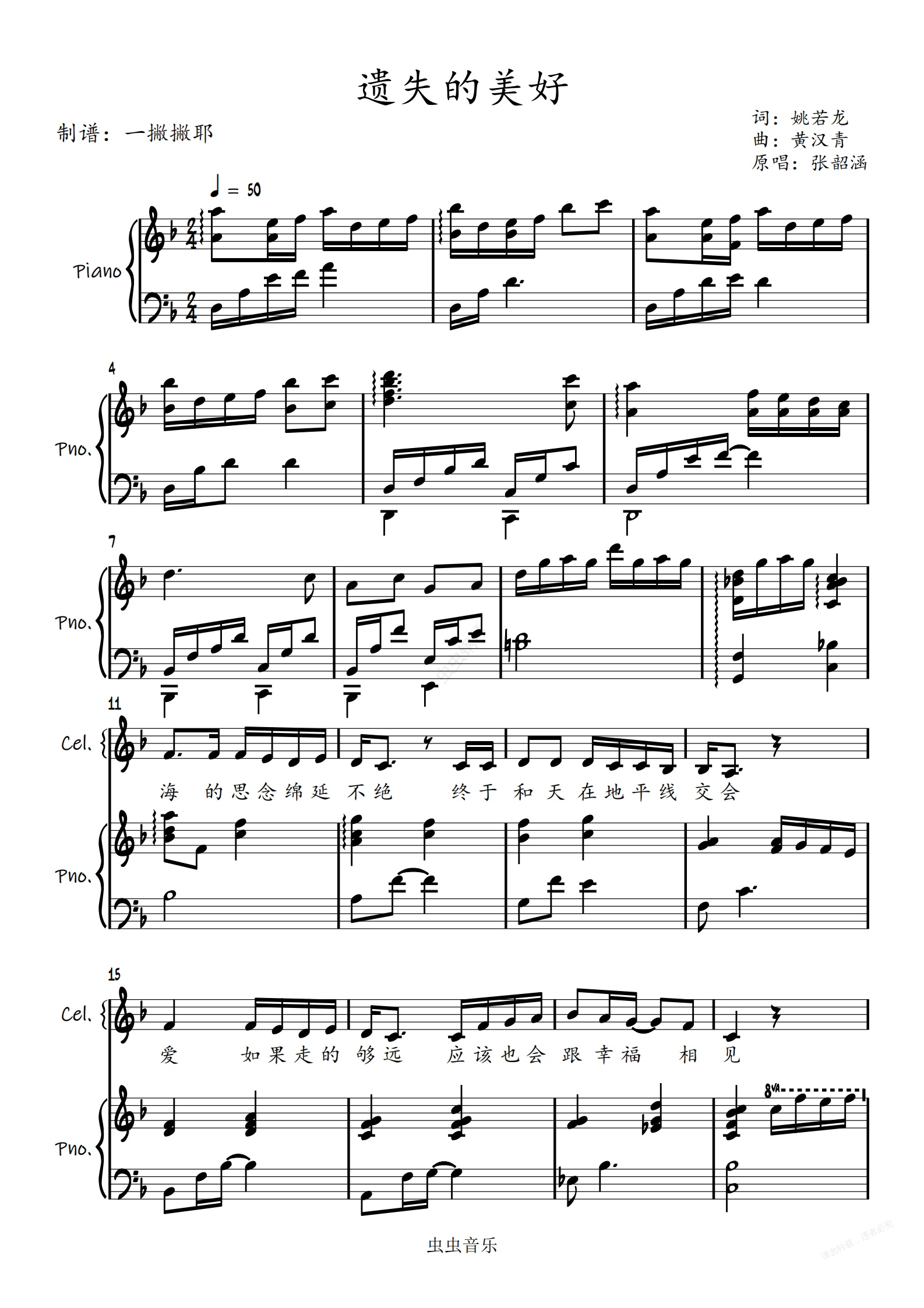 钢琴谱:遗失的美好【弹唱谱】张韶涵《海豚湾恋人》「一撇撇耶」