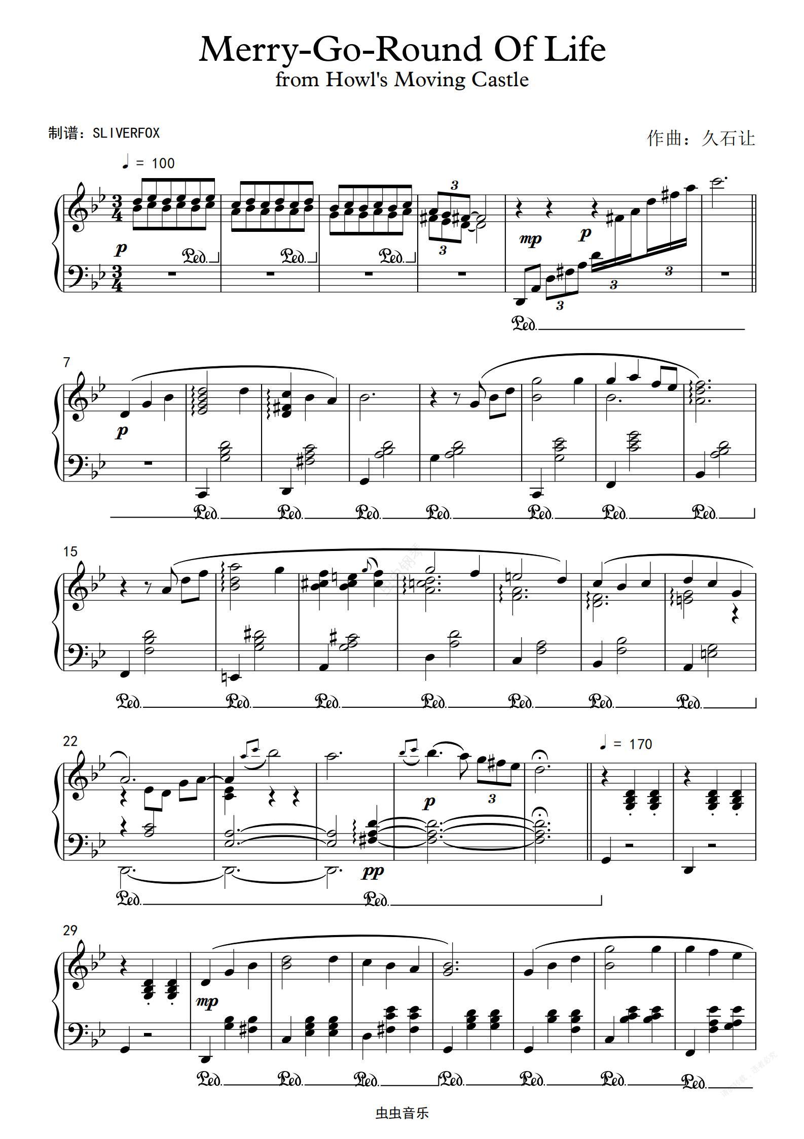 钢琴谱:人生的旋转木马 超好听完美独奏版 久石让轻音乐