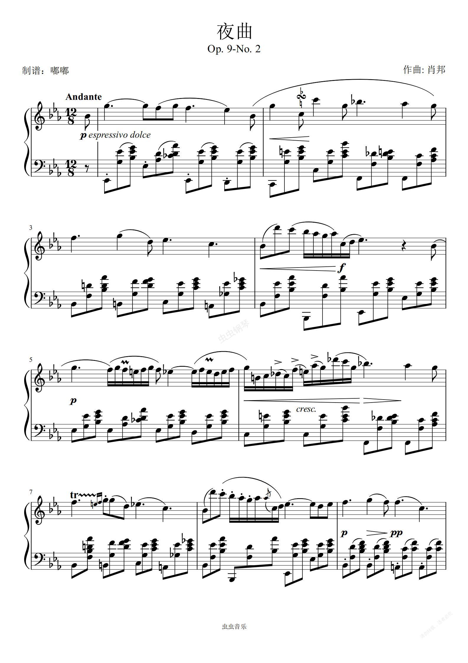 钢琴谱:肖邦《夜曲》——Op. 9-No. 2