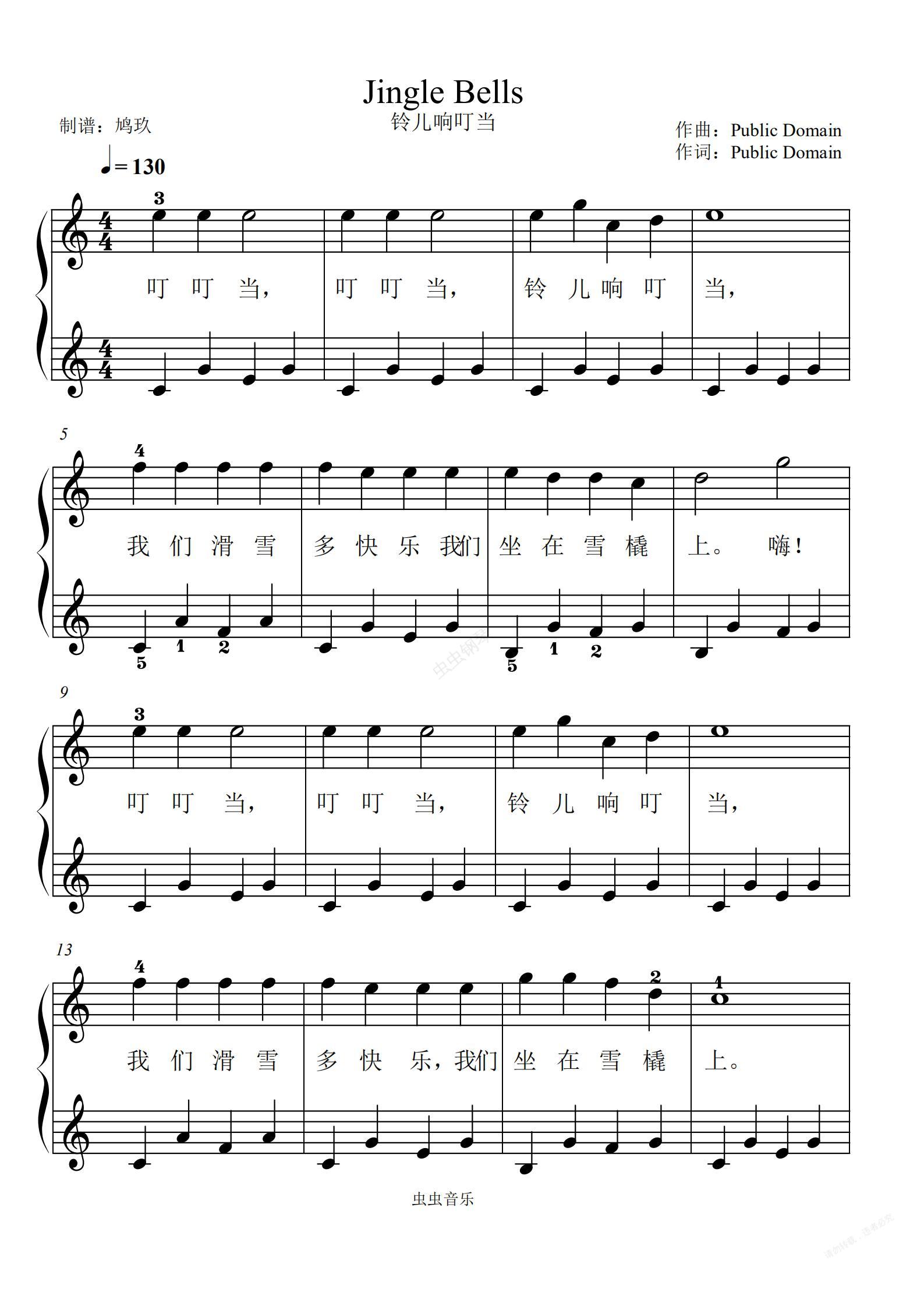 钢琴谱:Jingle Bells铃儿响叮当(拜厄程度)