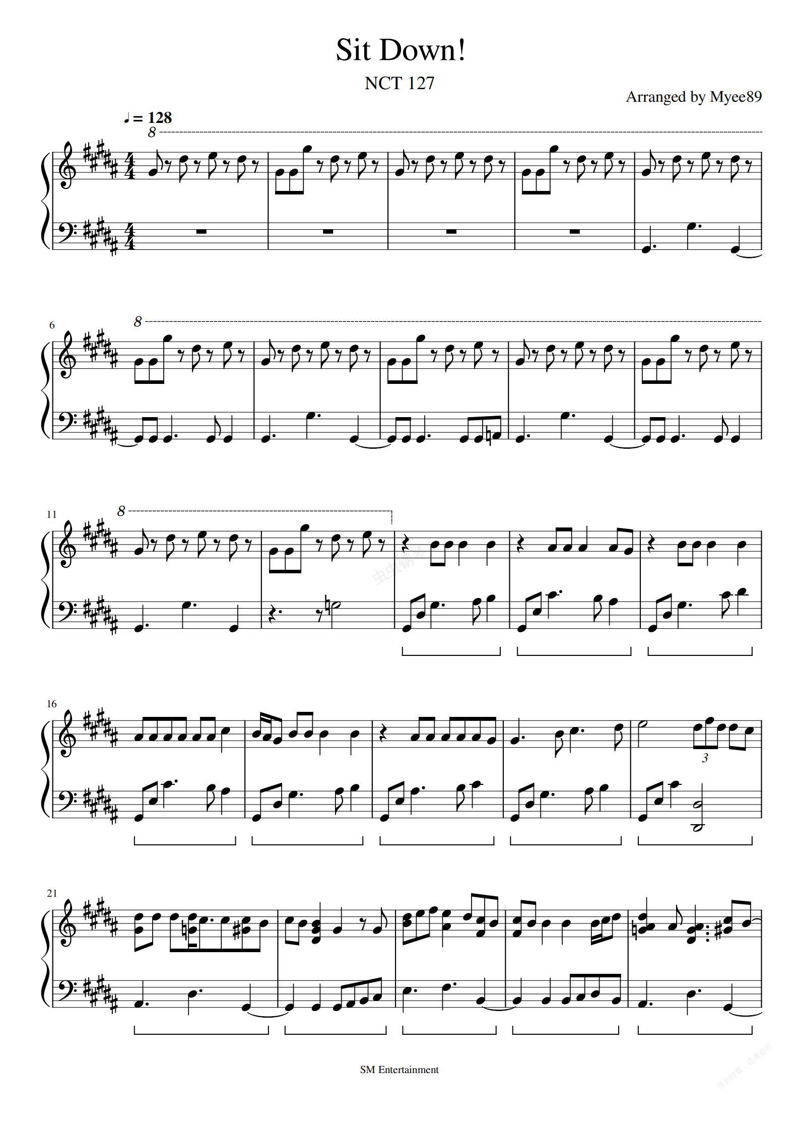 钢琴谱:NCT 127 - Sit Down! 琴谱