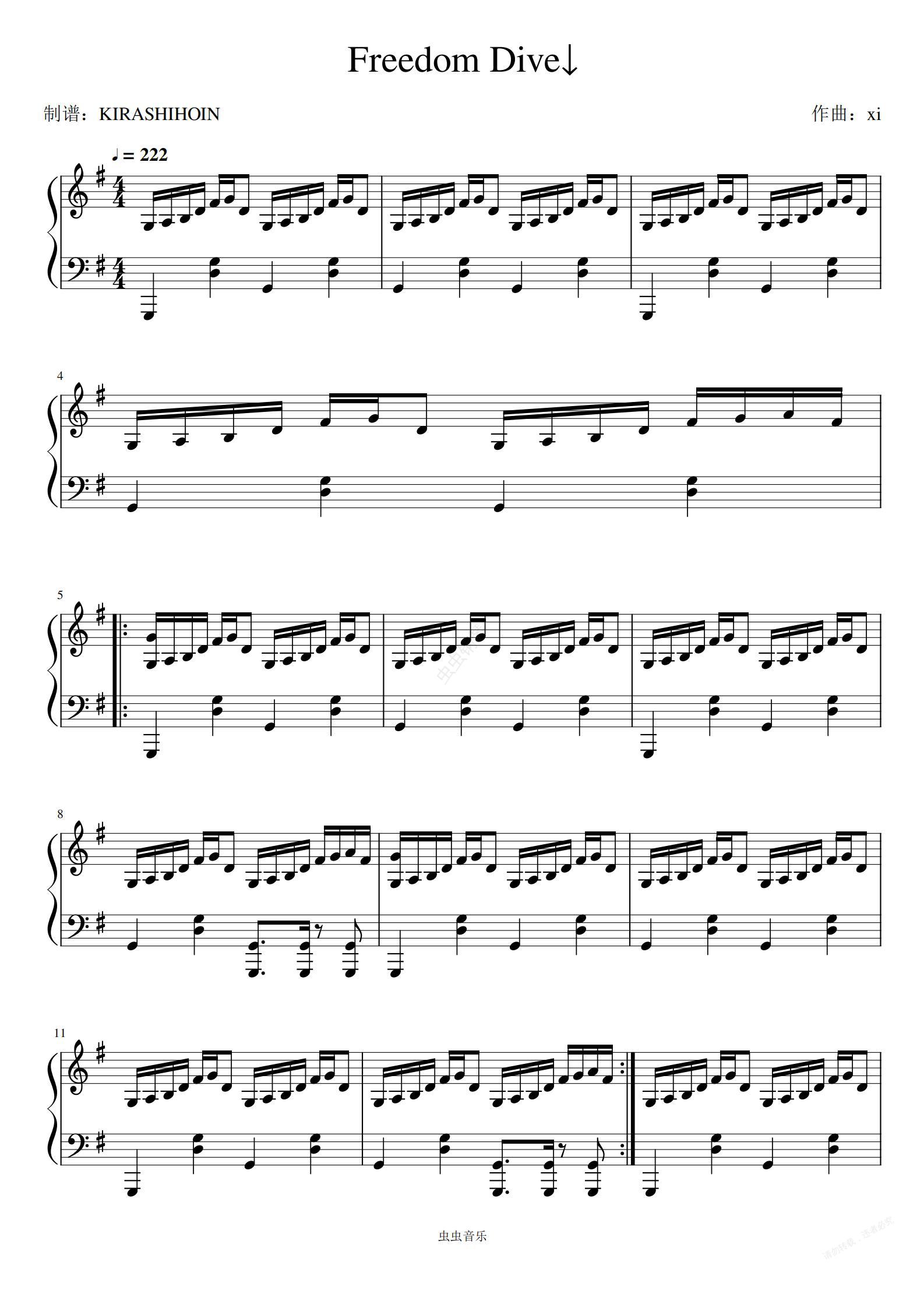钢琴谱:Freedom Dive↓