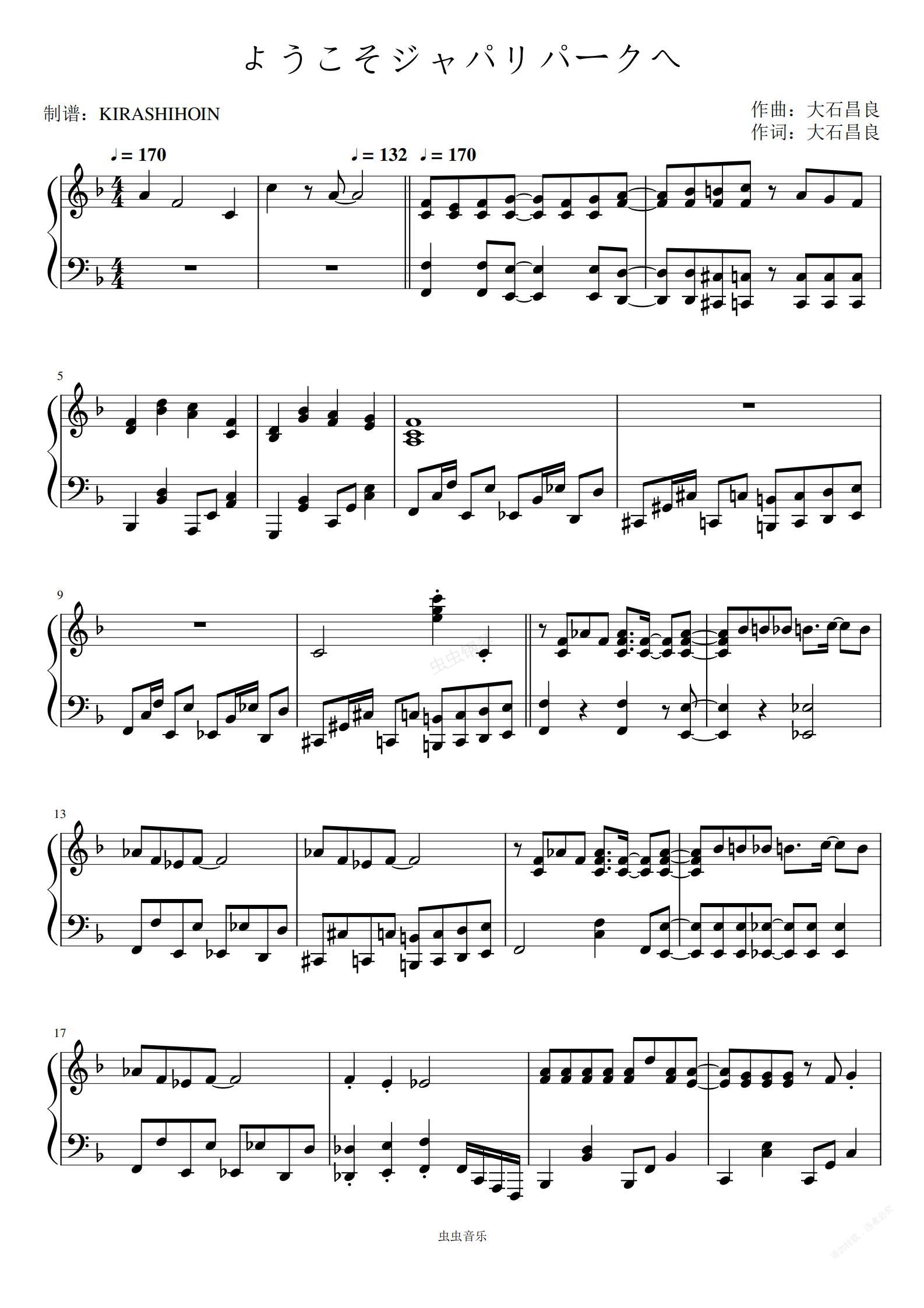 钢琴谱:ようこそジャパリパークへ(《兽娘动物园》OP)