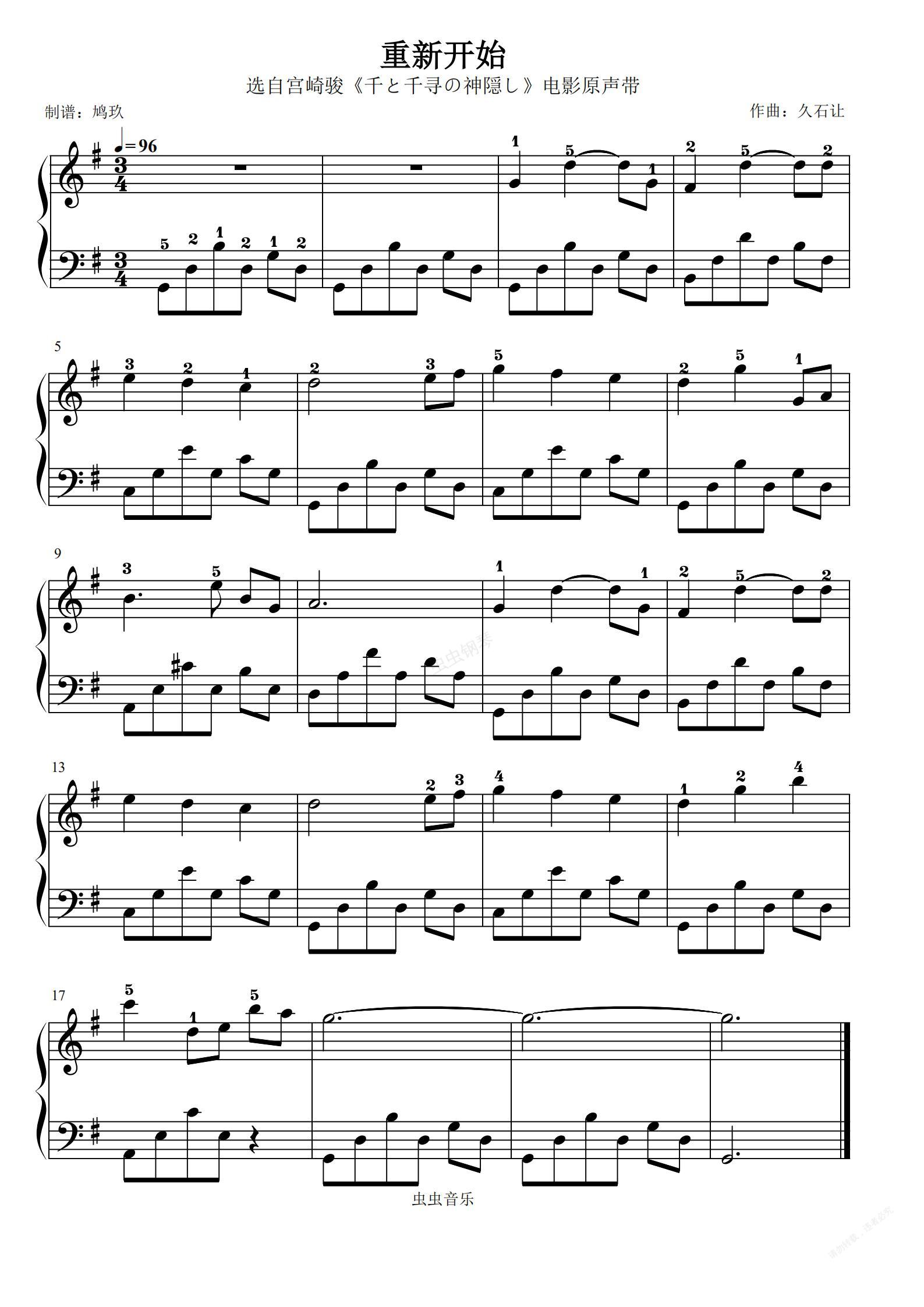 钢琴谱:重新开始(千与千寻)(大汤2程度)