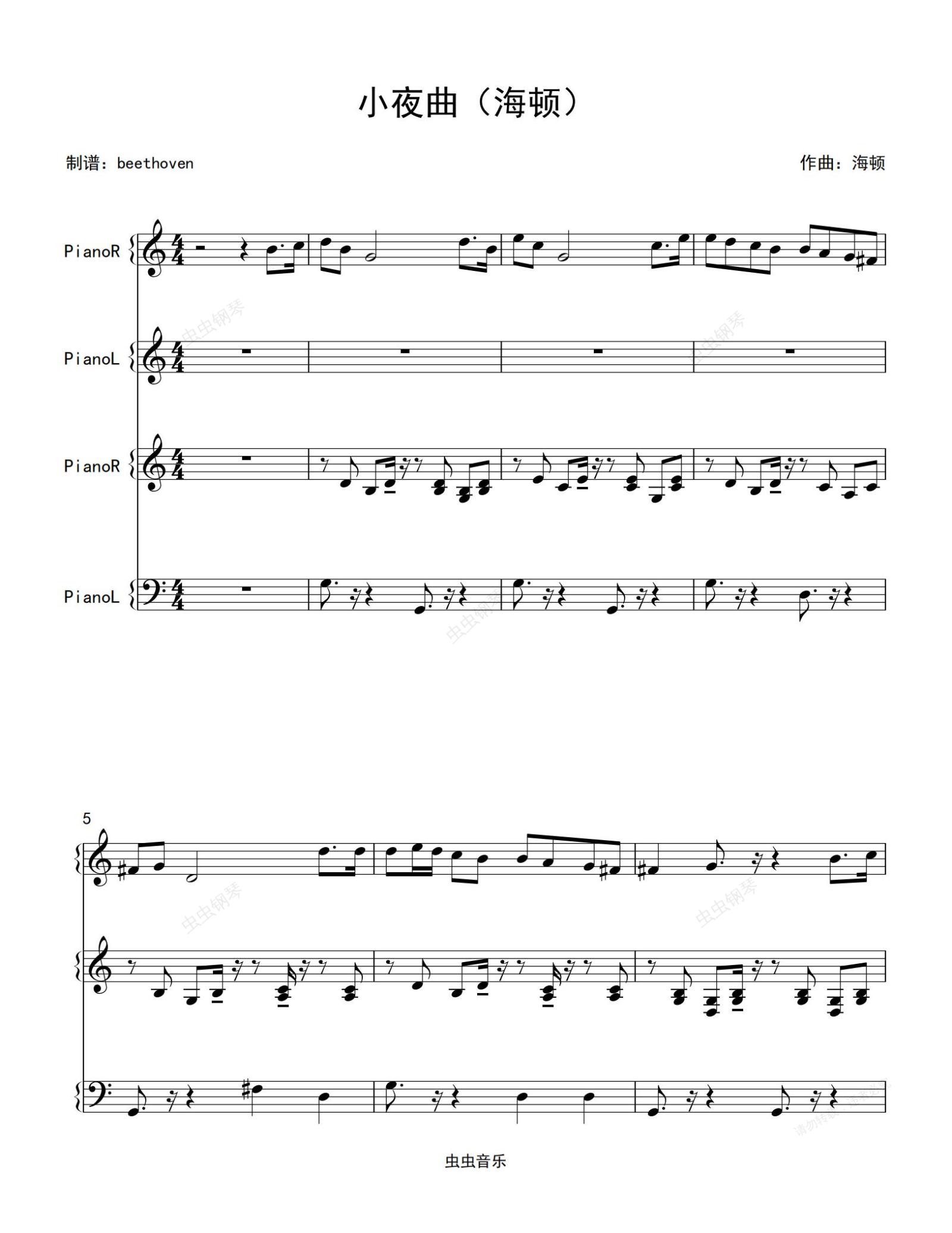 钢琴谱:小夜曲(海顿)钢琴四手联弹