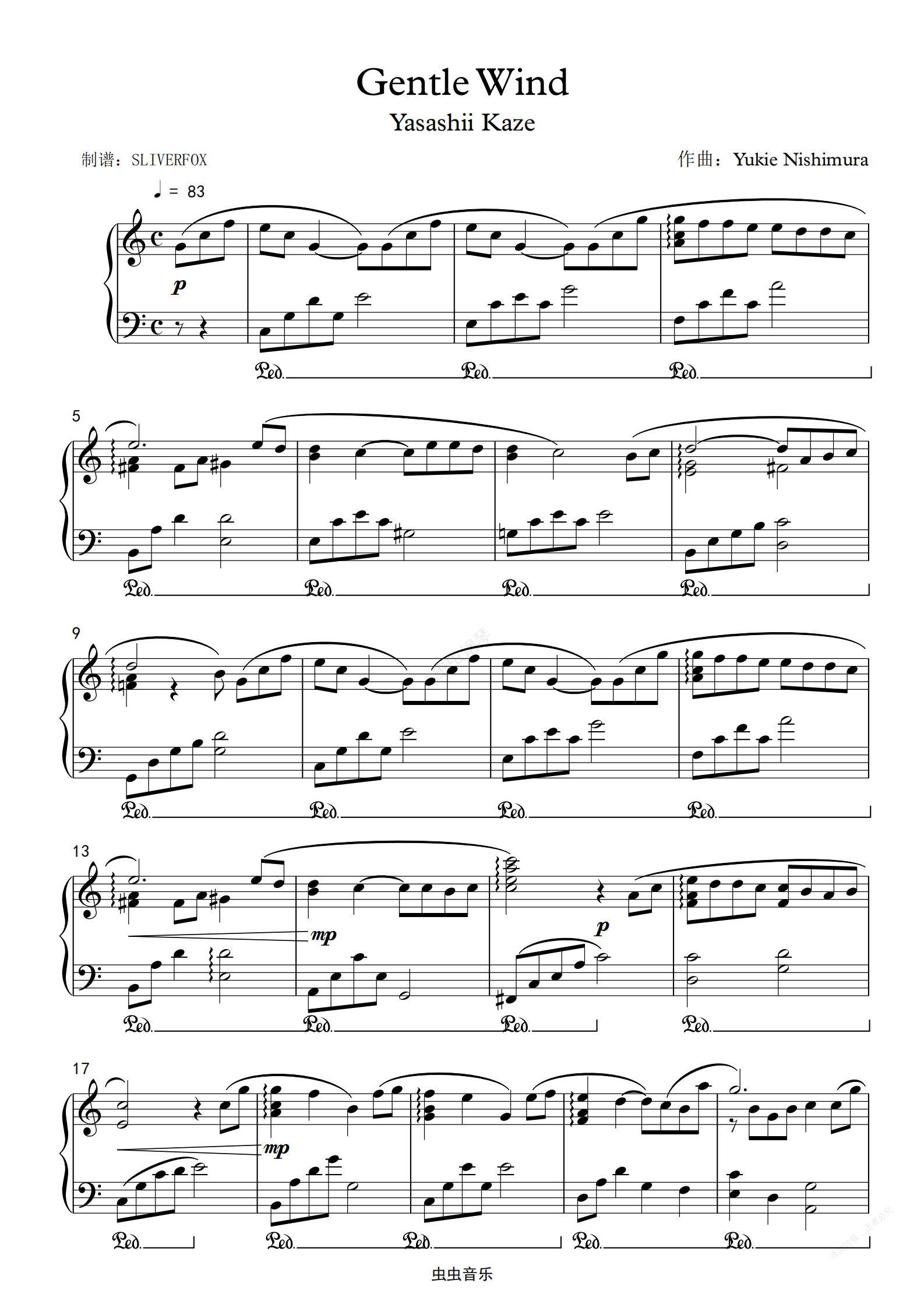 钢琴谱:Gentle Wind 柔美旋律轻音乐 西村由纪江温柔的风