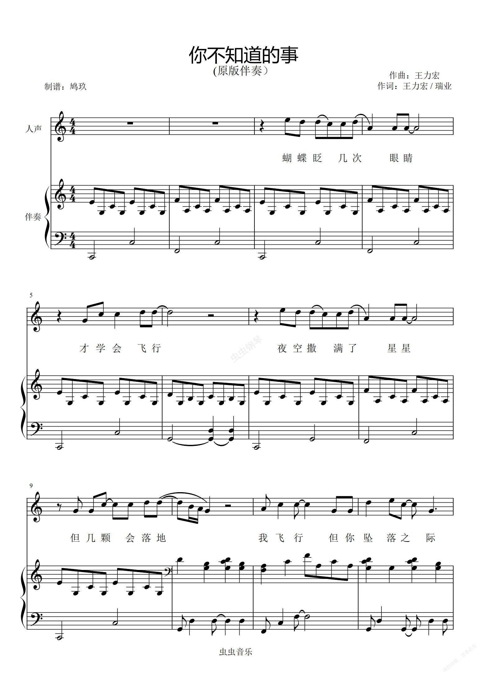 钢琴谱:你不知道的事(原版伴奏)《恋爱通告》电影主题曲