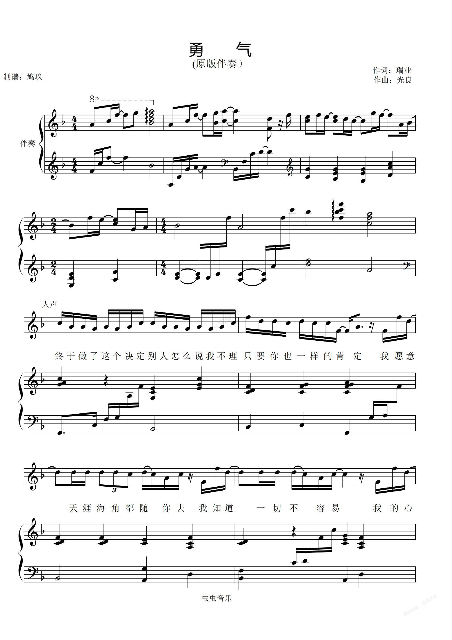 钢琴谱:勇气(原版伴奏)