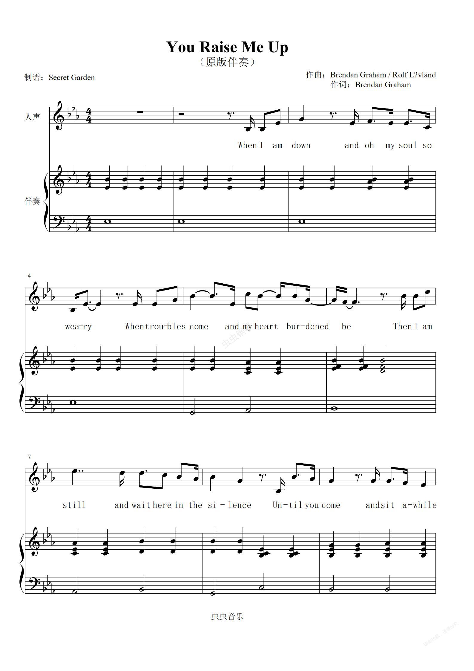 钢琴谱:you raise me up (原版伴奏)