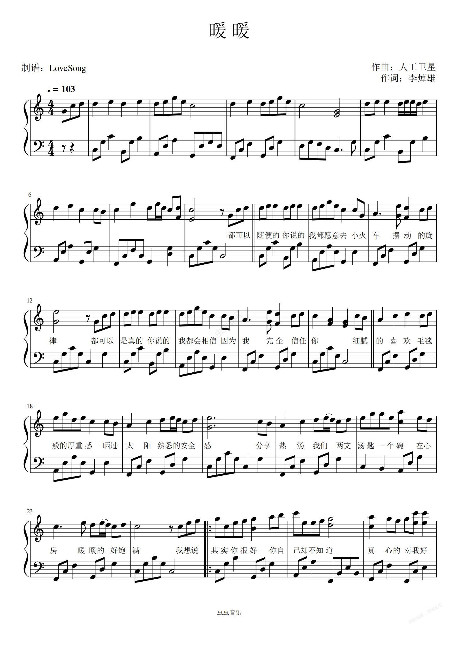 钢琴谱:梁静茹 暖暖钢琴谱带歌词高清完整版