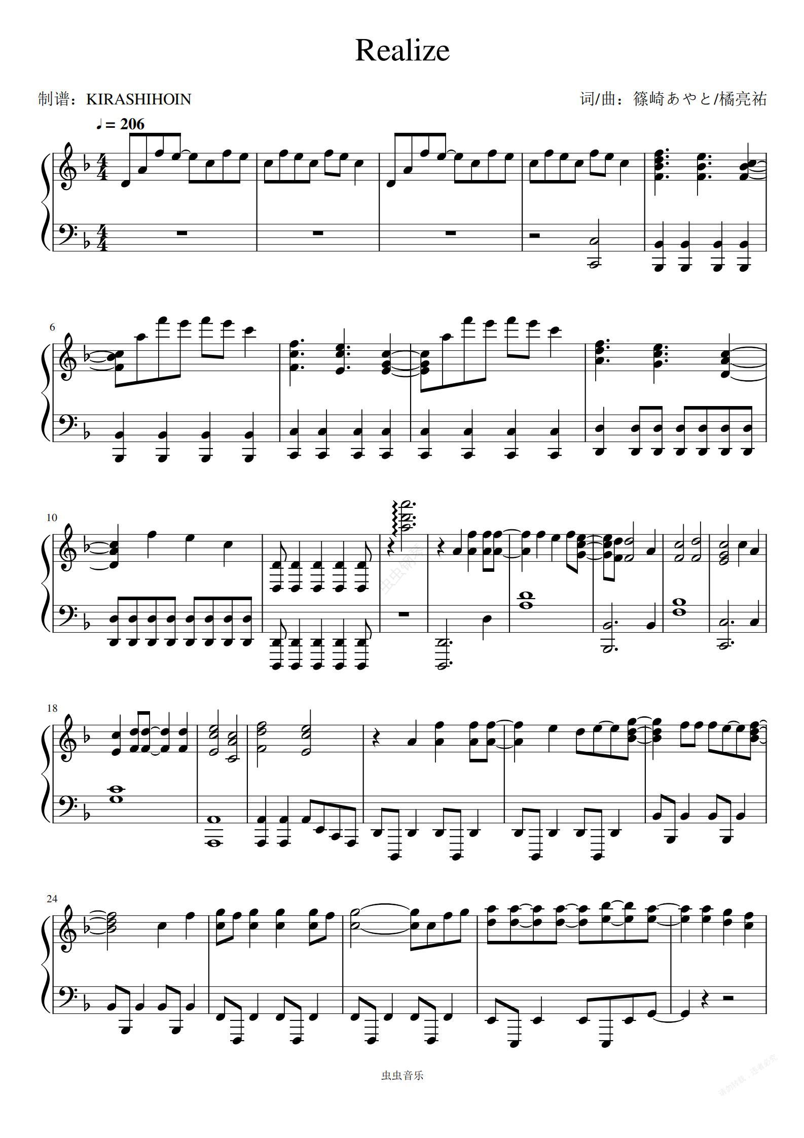 钢琴谱:Realize(《Re:从零开始的异世界生活 第二季》OP)