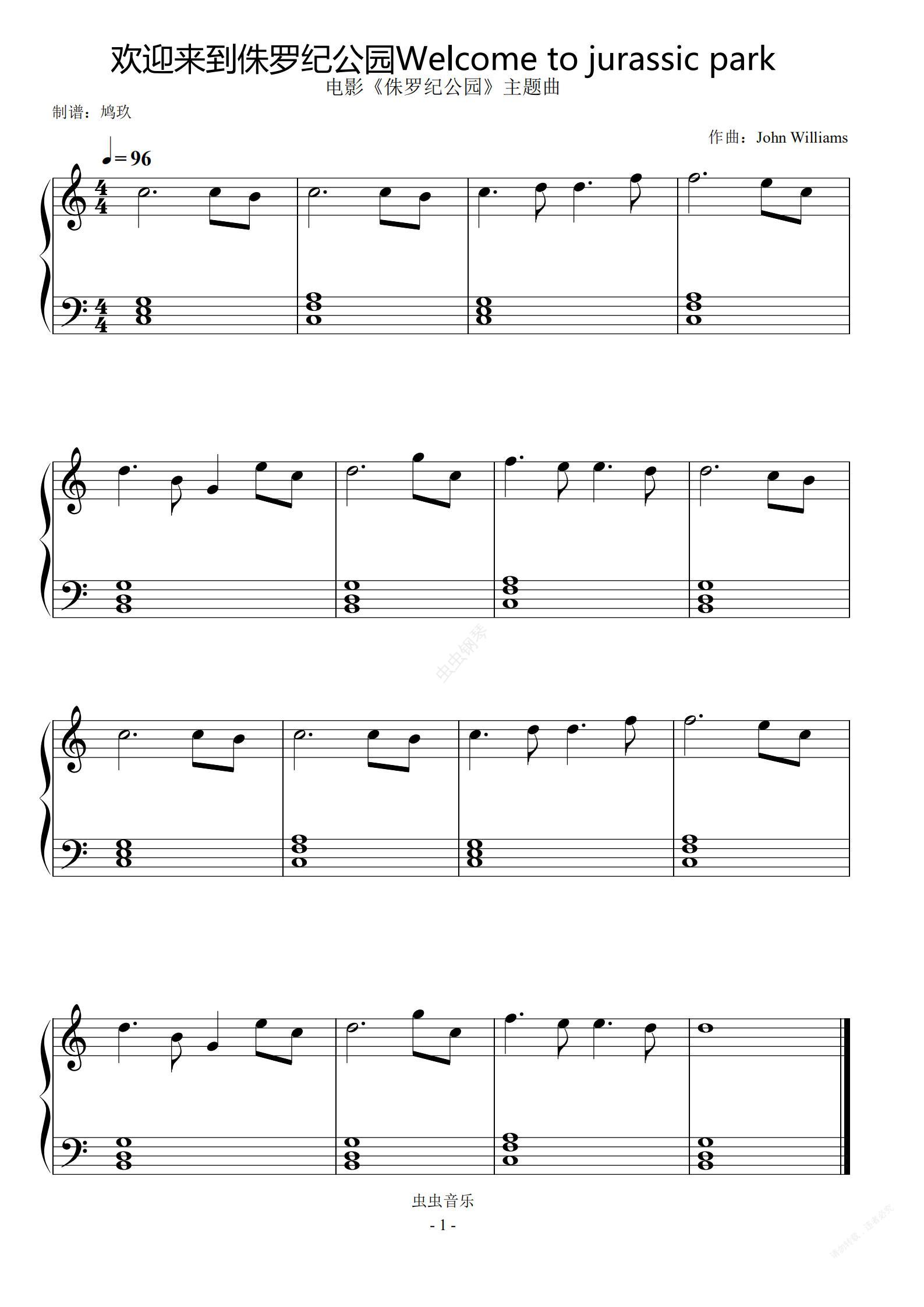 钢琴谱:Welcome to jurassic park(电影侏罗纪公园主题曲)小汤3版本