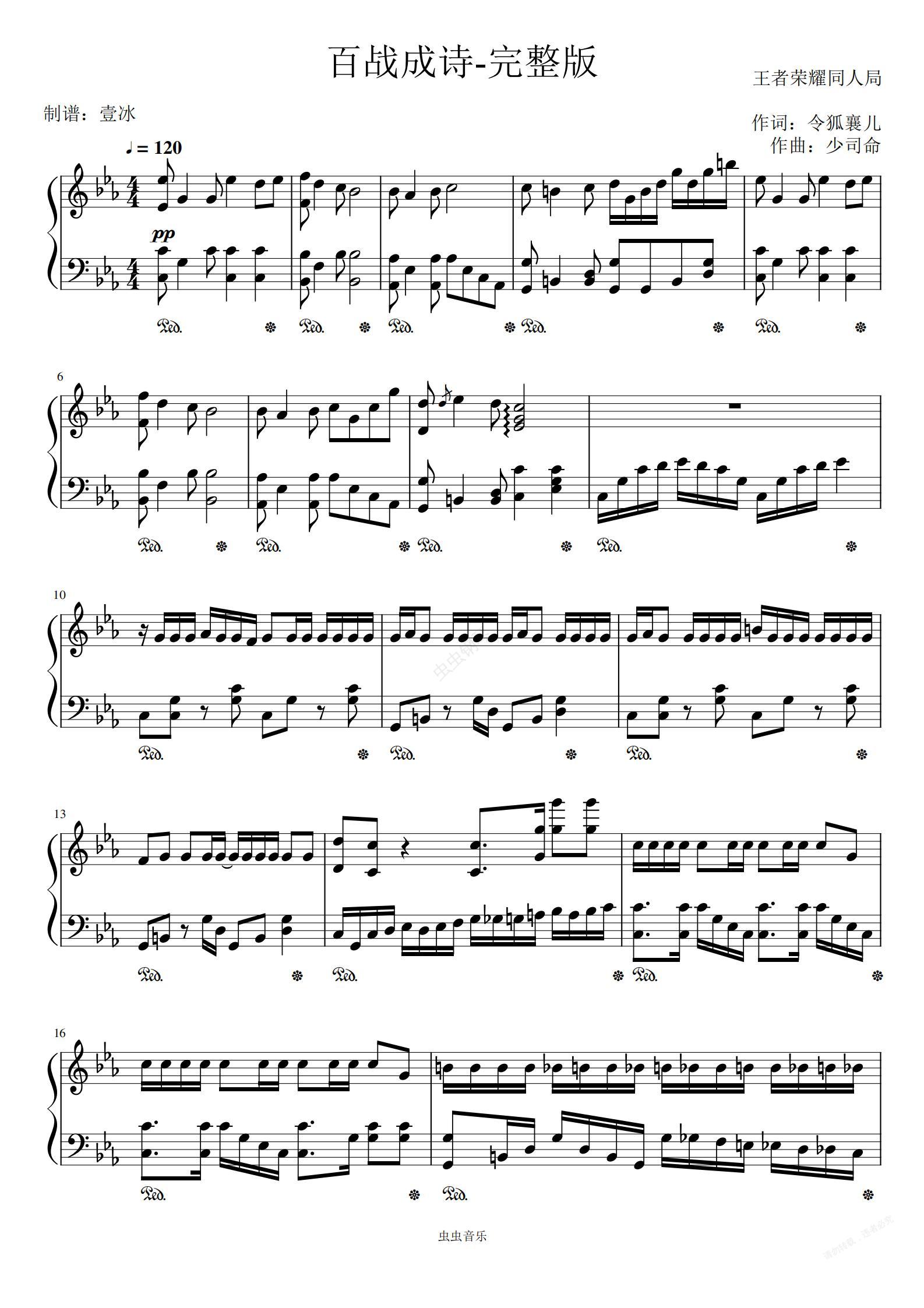 钢琴谱:百战成诗//完整版-壹冰钢琴版(王者荣耀·100英雄群像献礼歌)