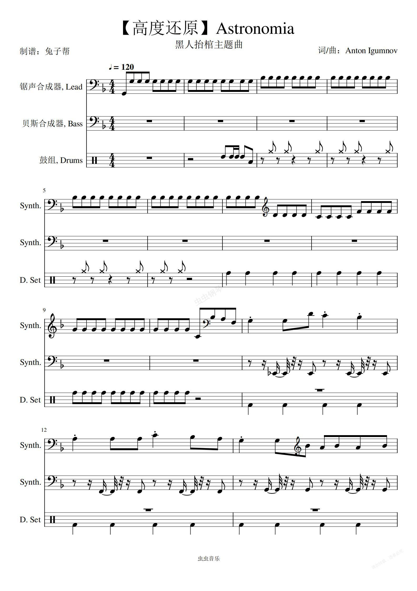 钢琴谱:【高度还原】Astronomia(黑人抬棺)