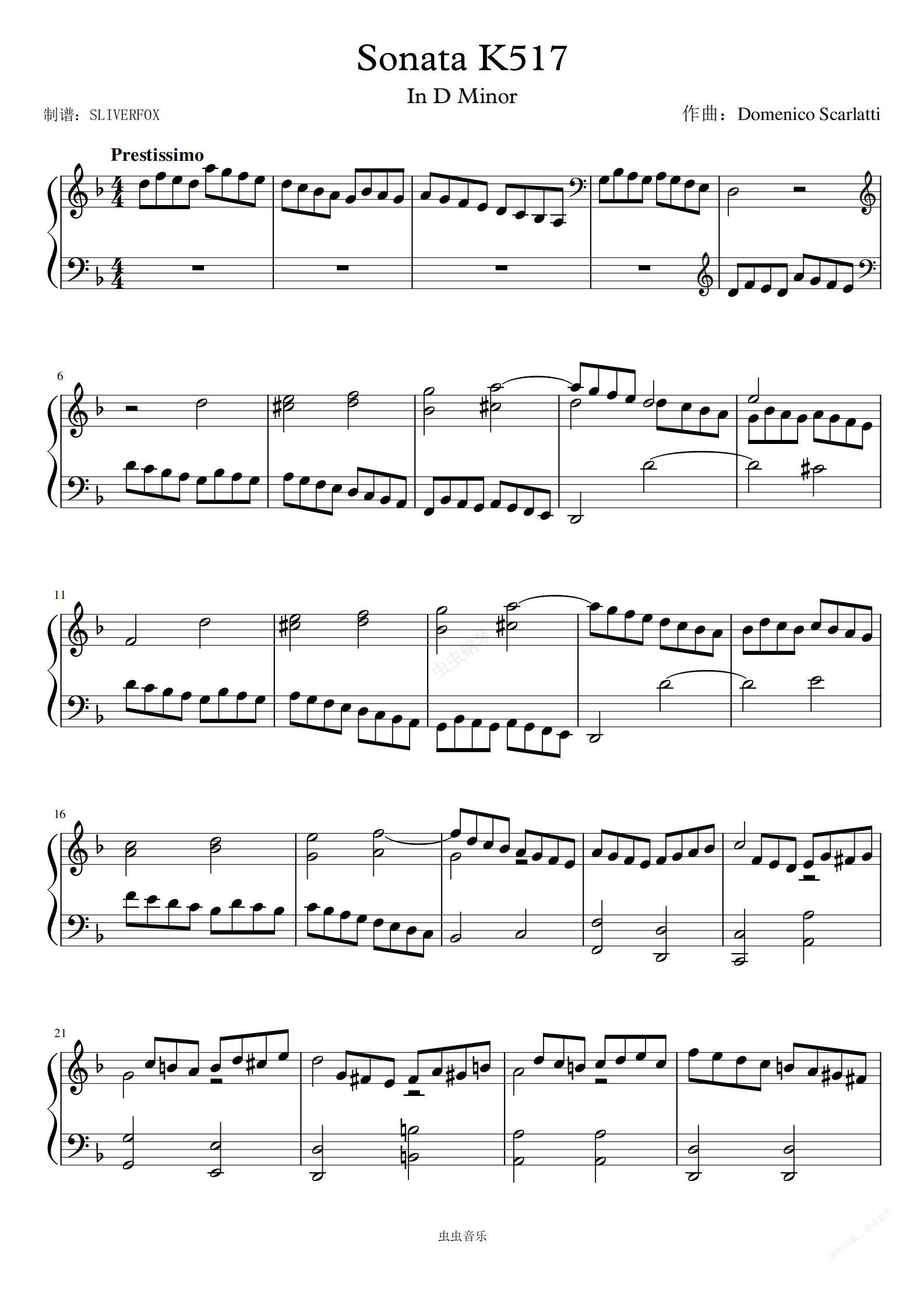 钢琴谱:斯卡拉蒂奏鸣曲K517 Sonata K517
