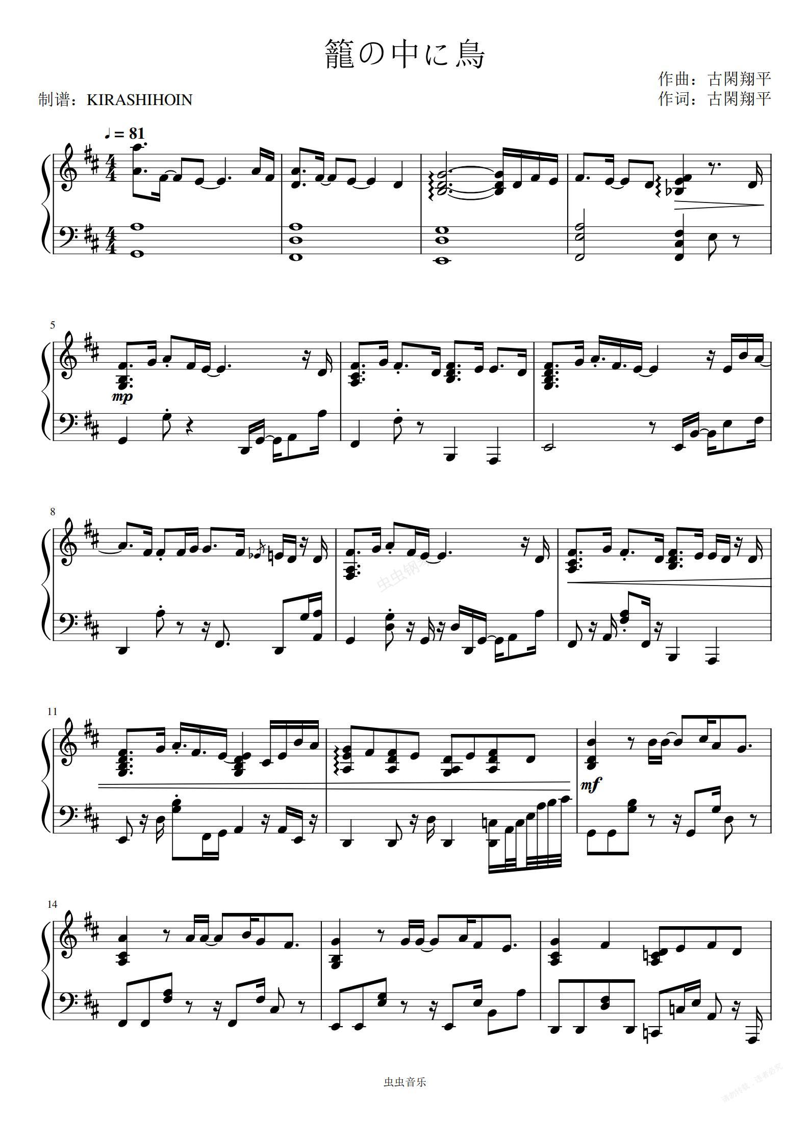 钢琴谱:籠の中に鳥(《昨日之歌》主题曲)