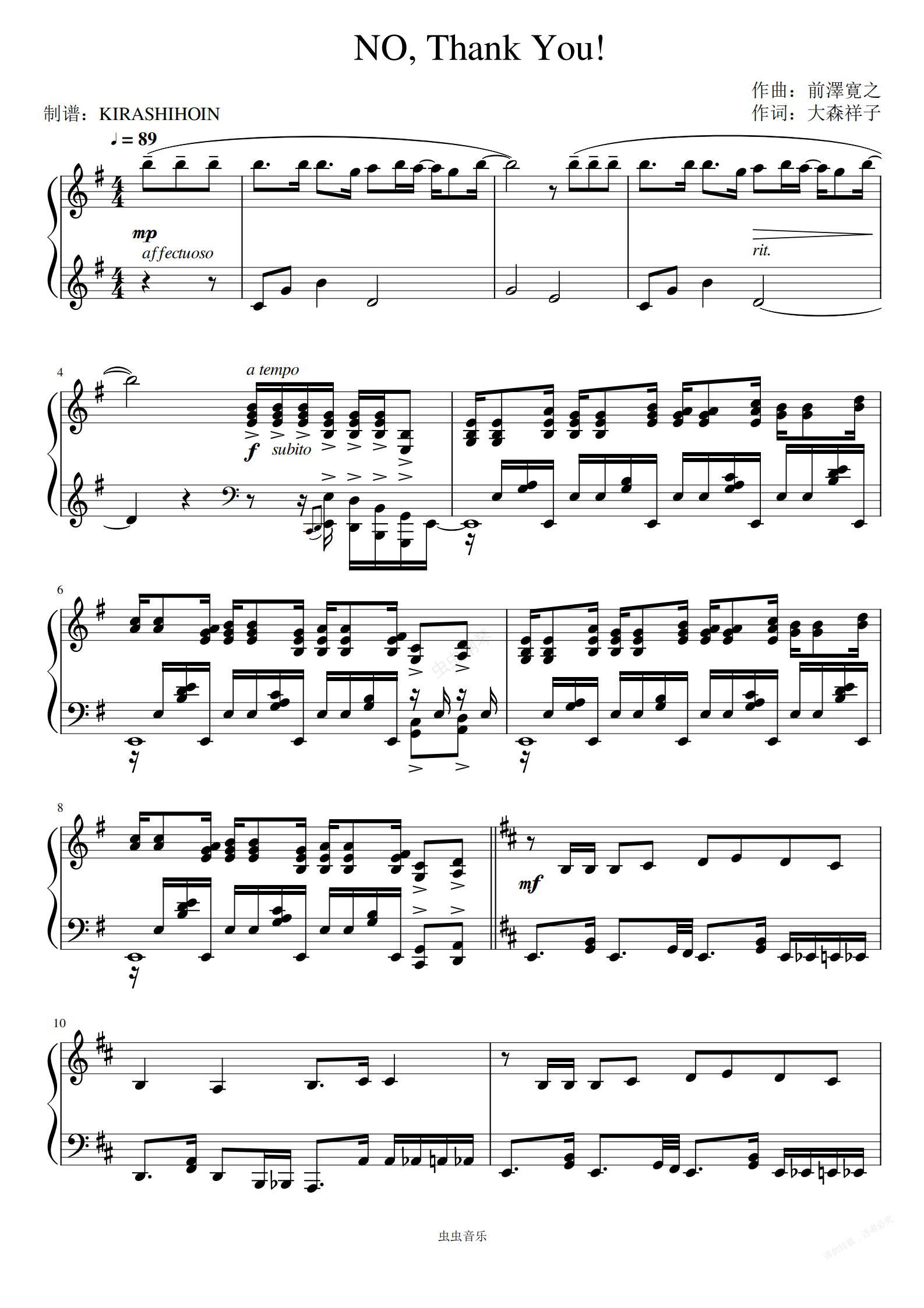 钢琴谱:NO, Thank You!(《轻音少女》ED)