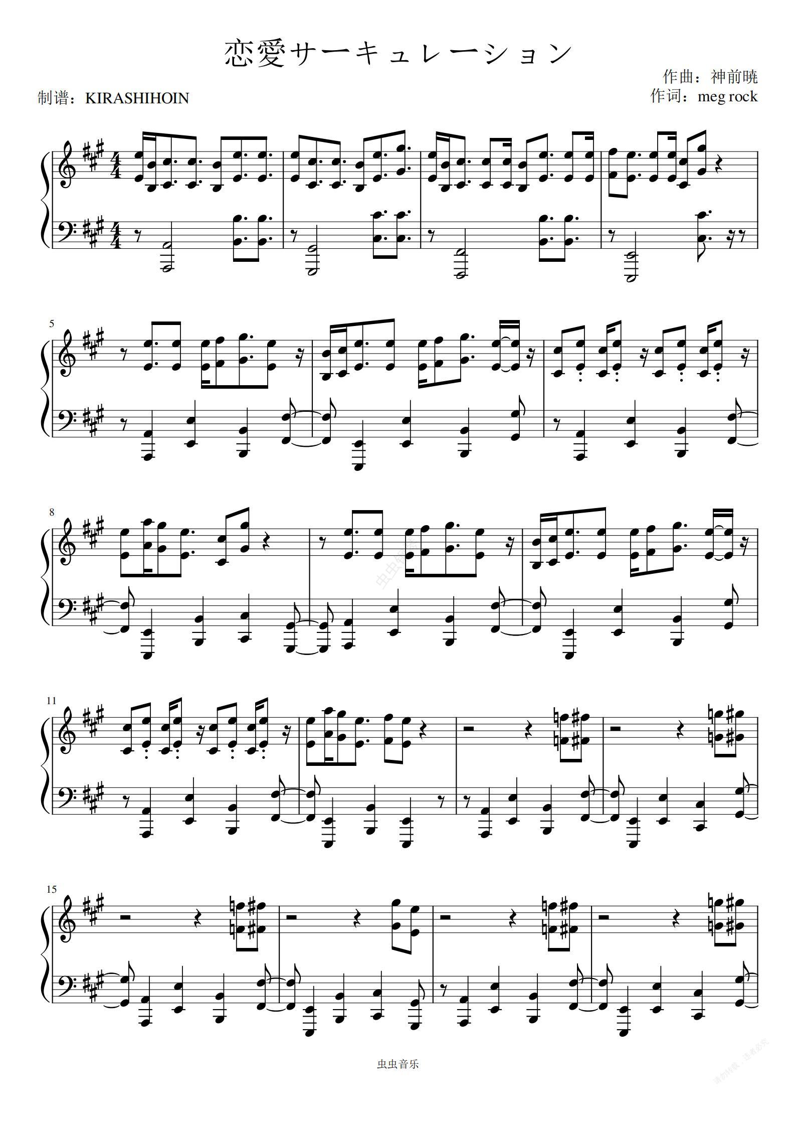 钢琴谱:恋爱循环/恋愛サーキュレーション(《化物语》OP)