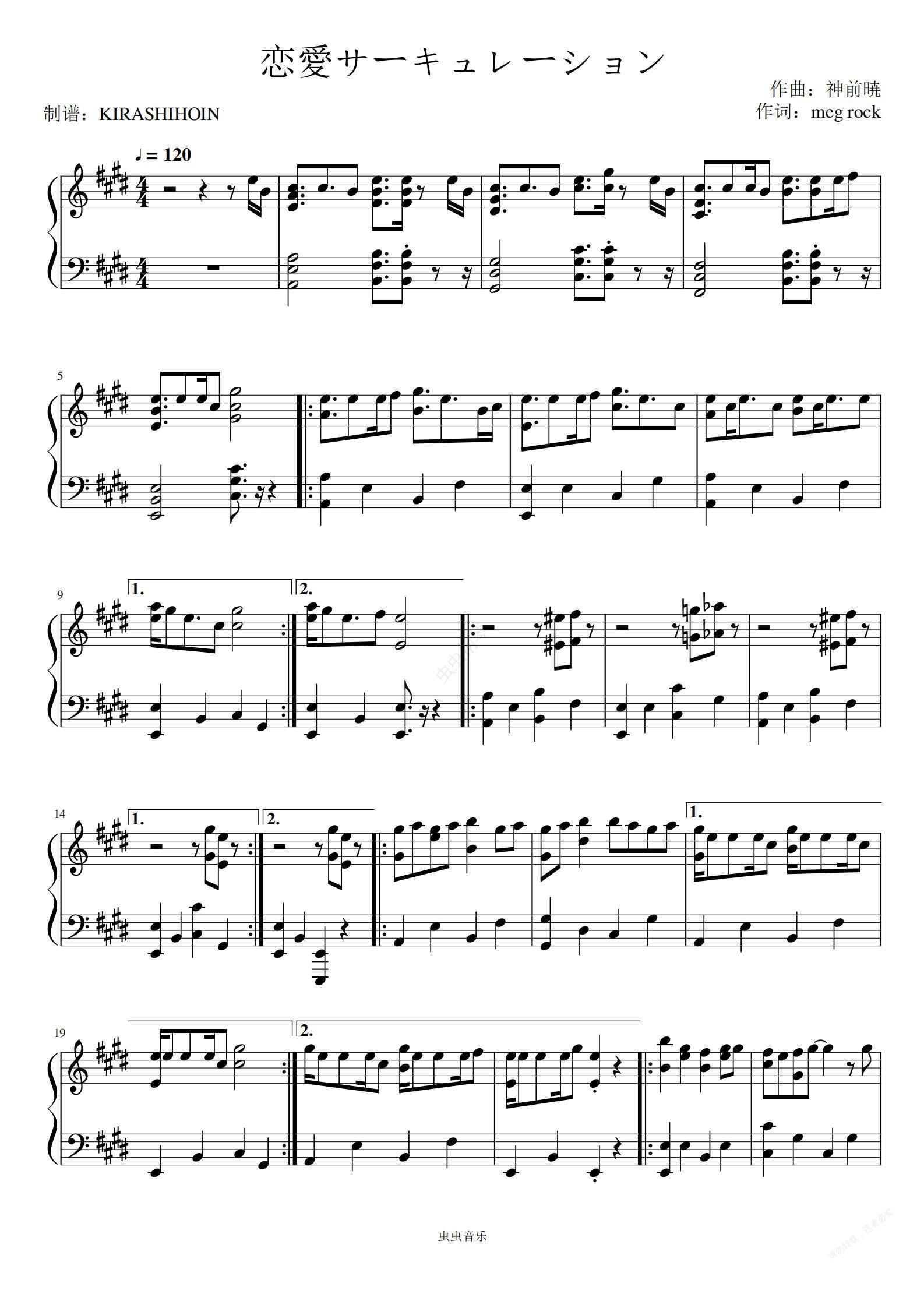 钢琴谱:恋愛サーキュレーション/恋爱循环(《化物语》OP)