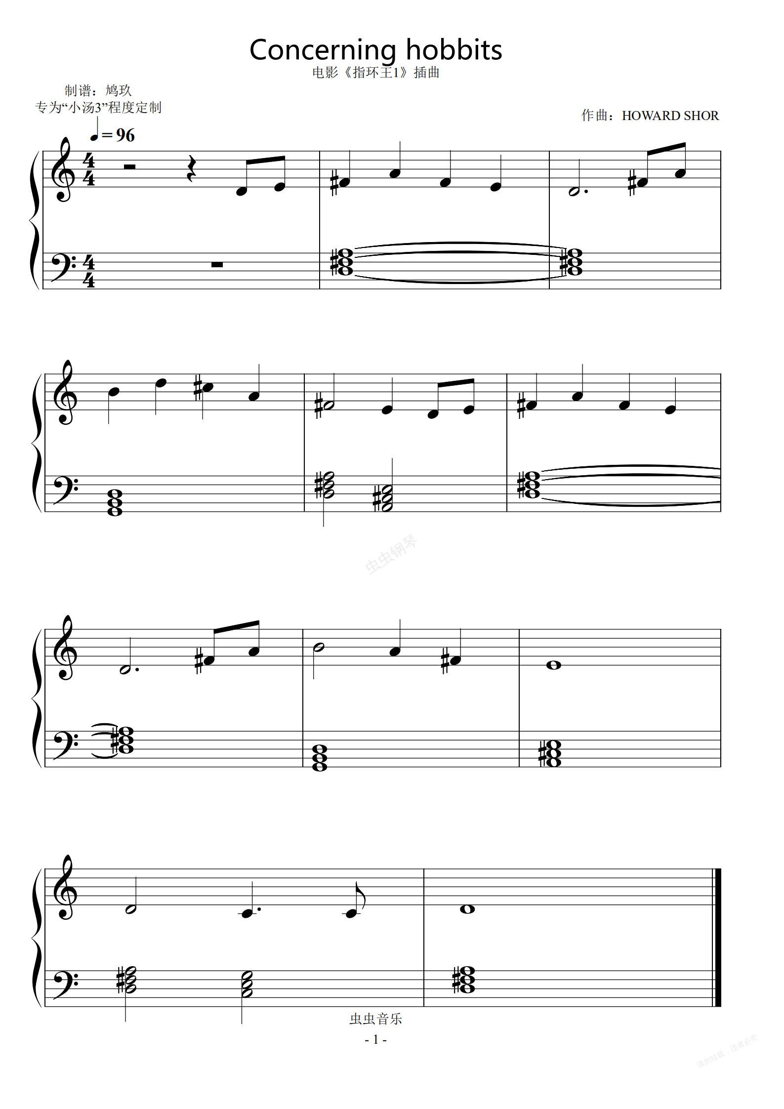 钢琴谱:指环王-Concerning hobbits(小汤3版本)