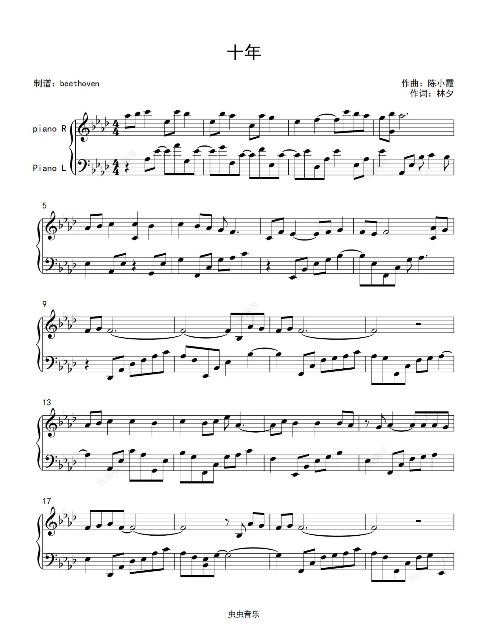 钢琴谱:十年(钢琴独奏)-陈奕迅