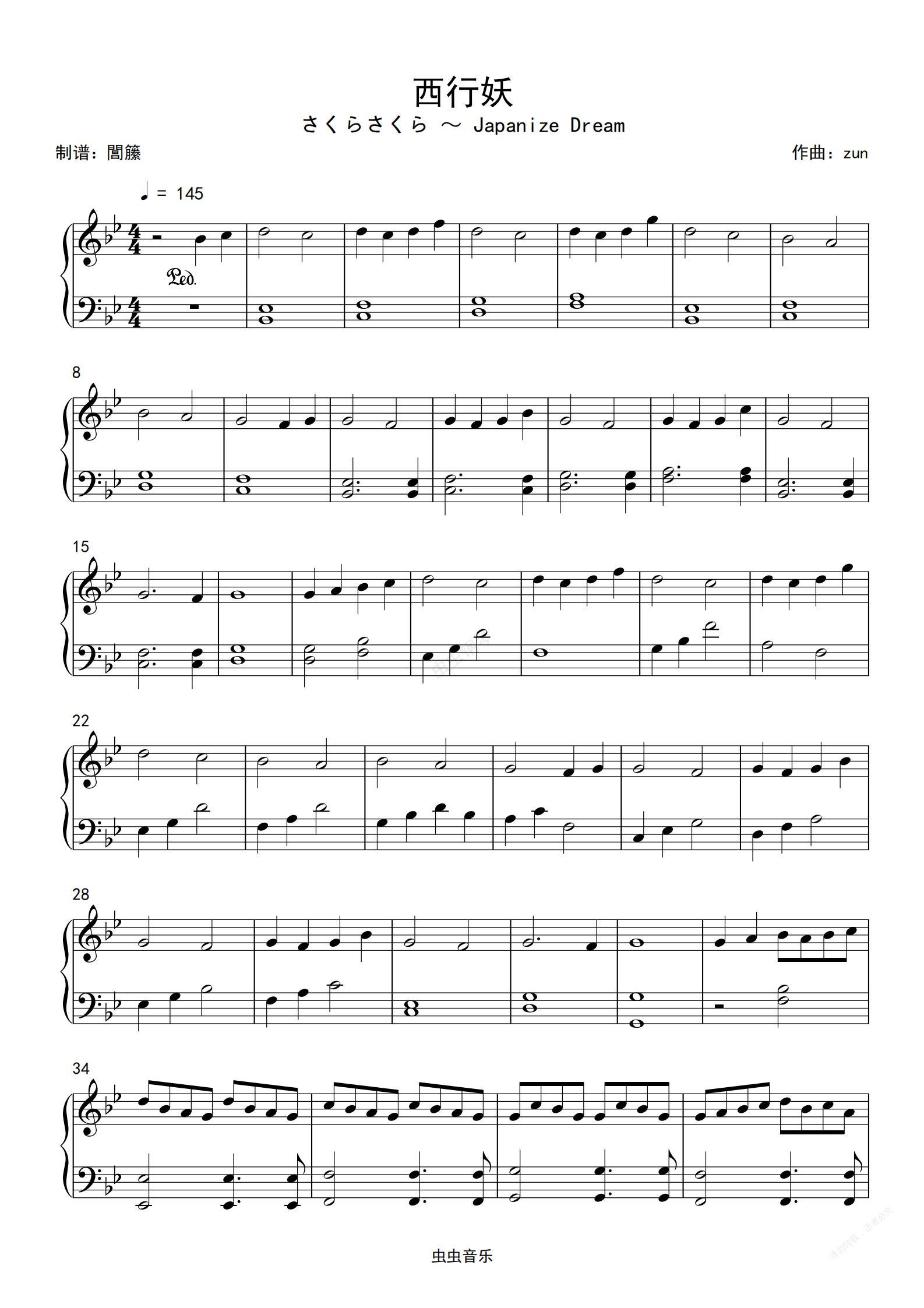 钢琴谱:【东方妖妖梦】西行妖 {さくらさくら ~ Japanize Dream}