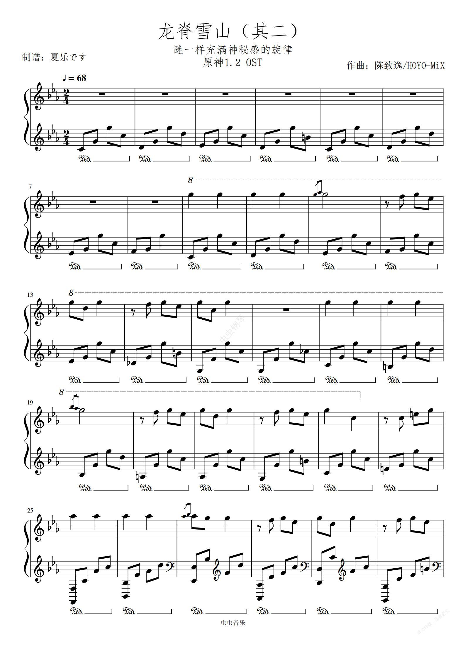 钢琴谱:【原神】龙脊雪山 未完成的画作 钢琴改编