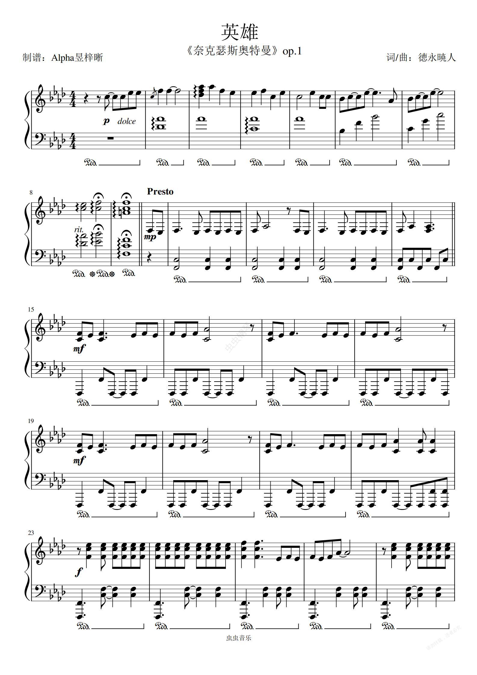 钢琴谱:英雄《奈克瑟斯奥特曼》op.1