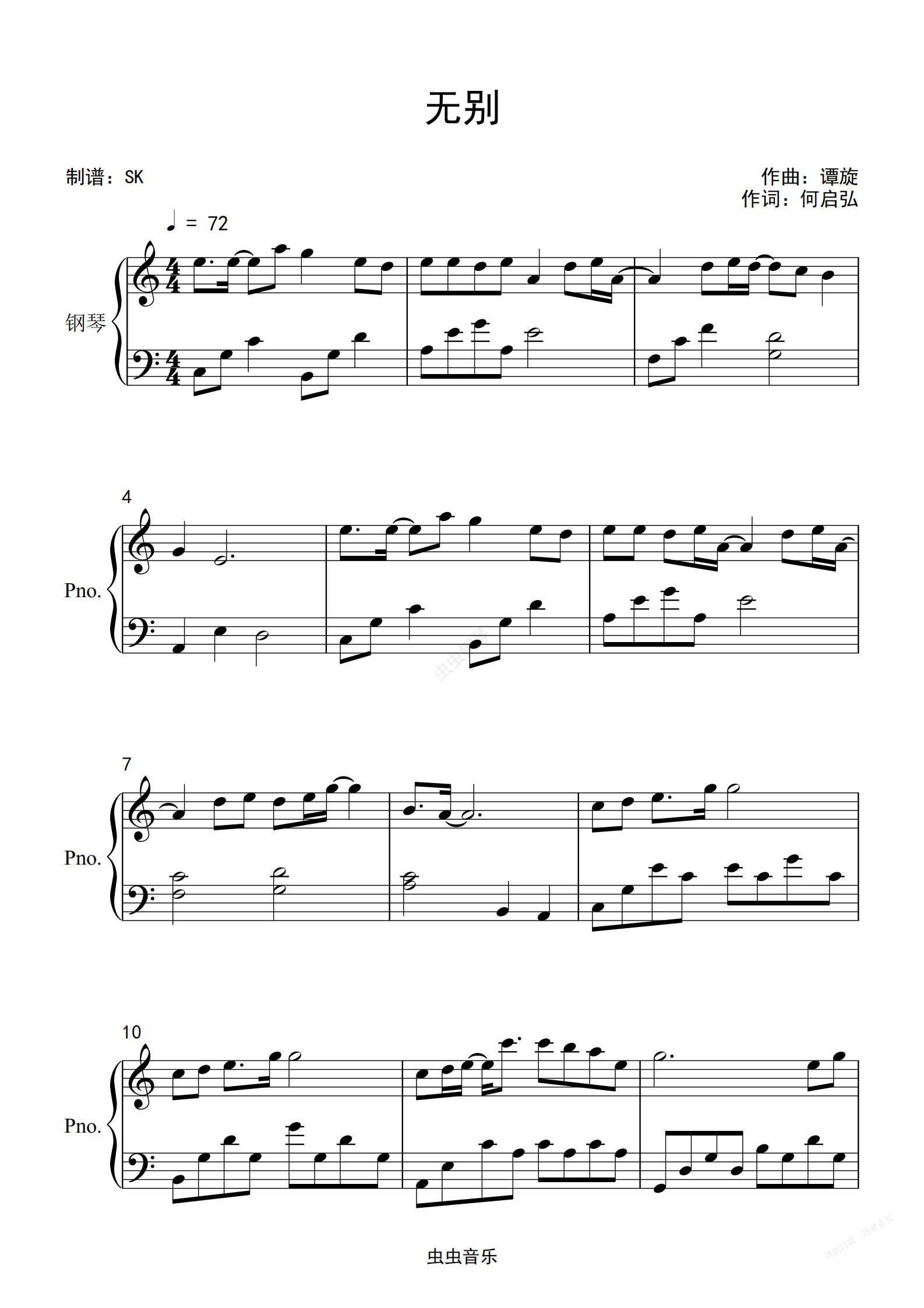 钢琴谱:《天官赐福》张信哲《无别》C调简单版