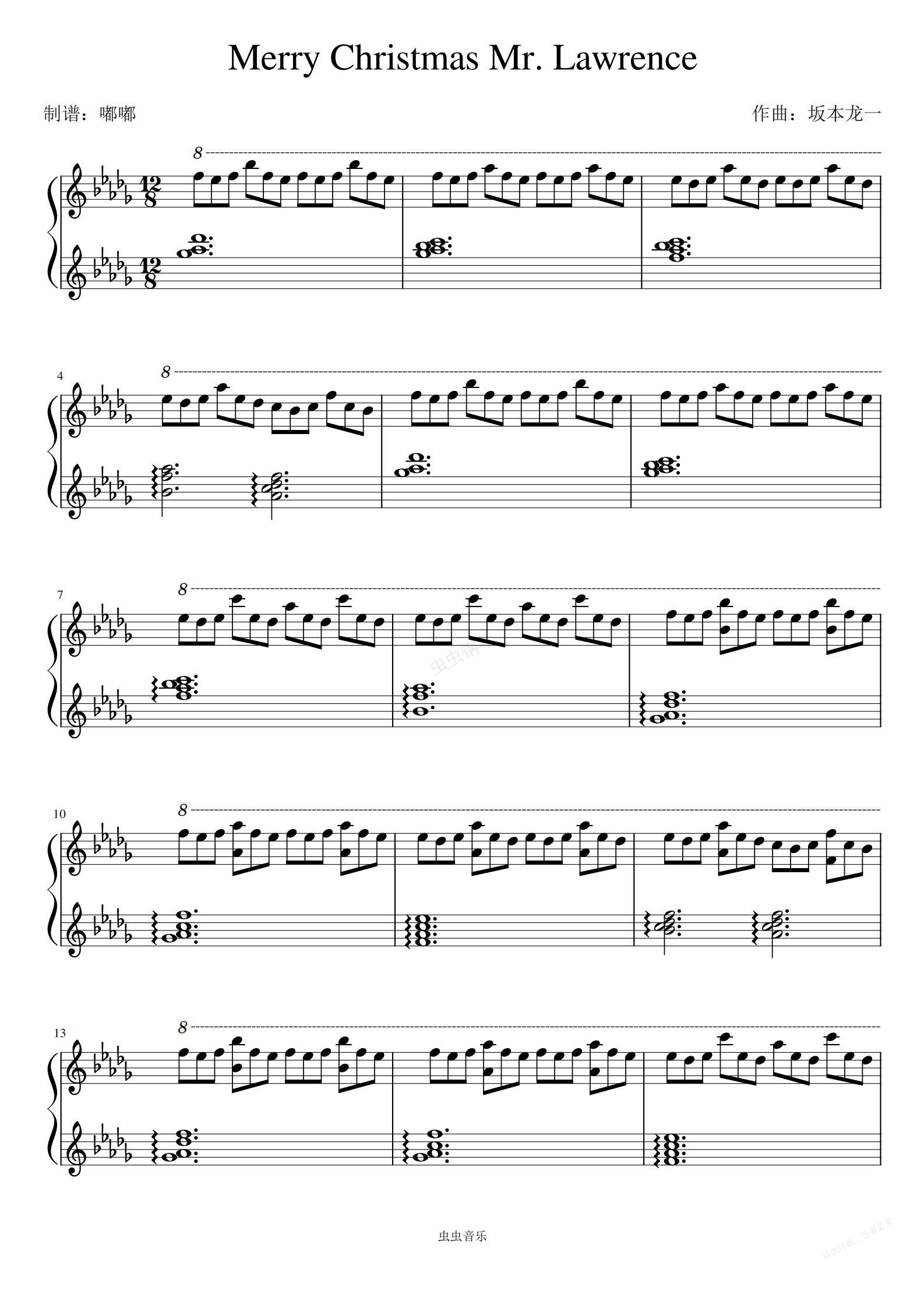 钢琴谱:Merry Christmas Mr. Lawrence(圣诞快乐,劳伦斯先生)——坂本龍一
