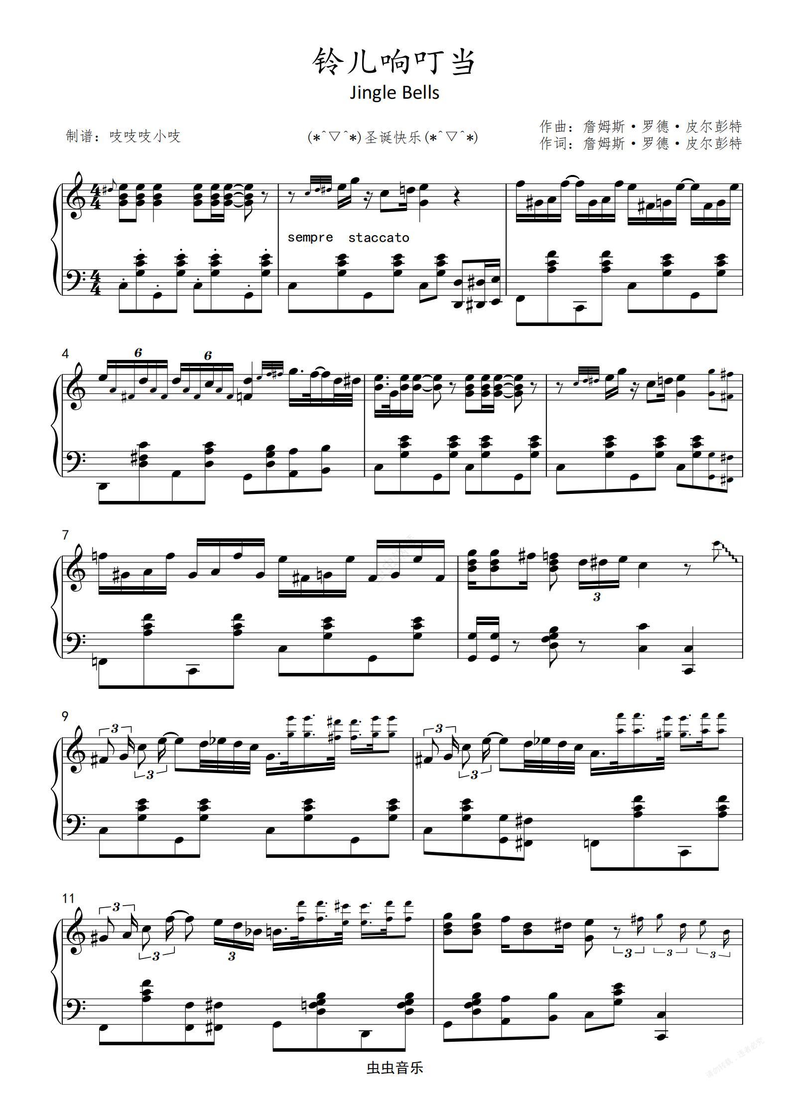 钢琴谱:铃儿响叮当  欢乐版