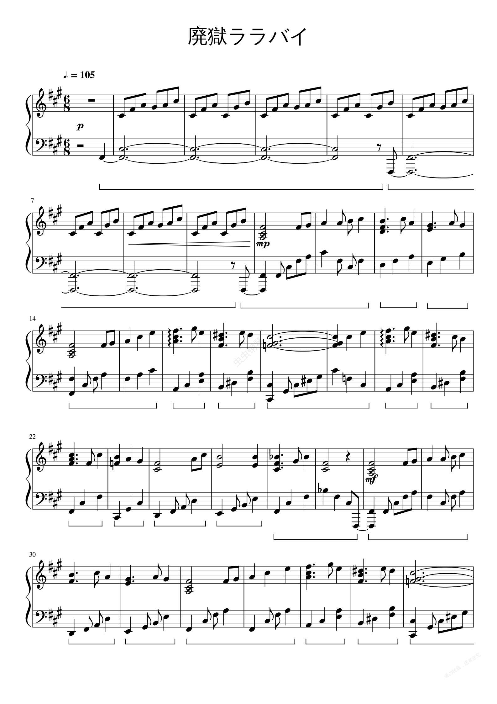 钢琴谱:【东方地灵殿】废狱摇篮曲