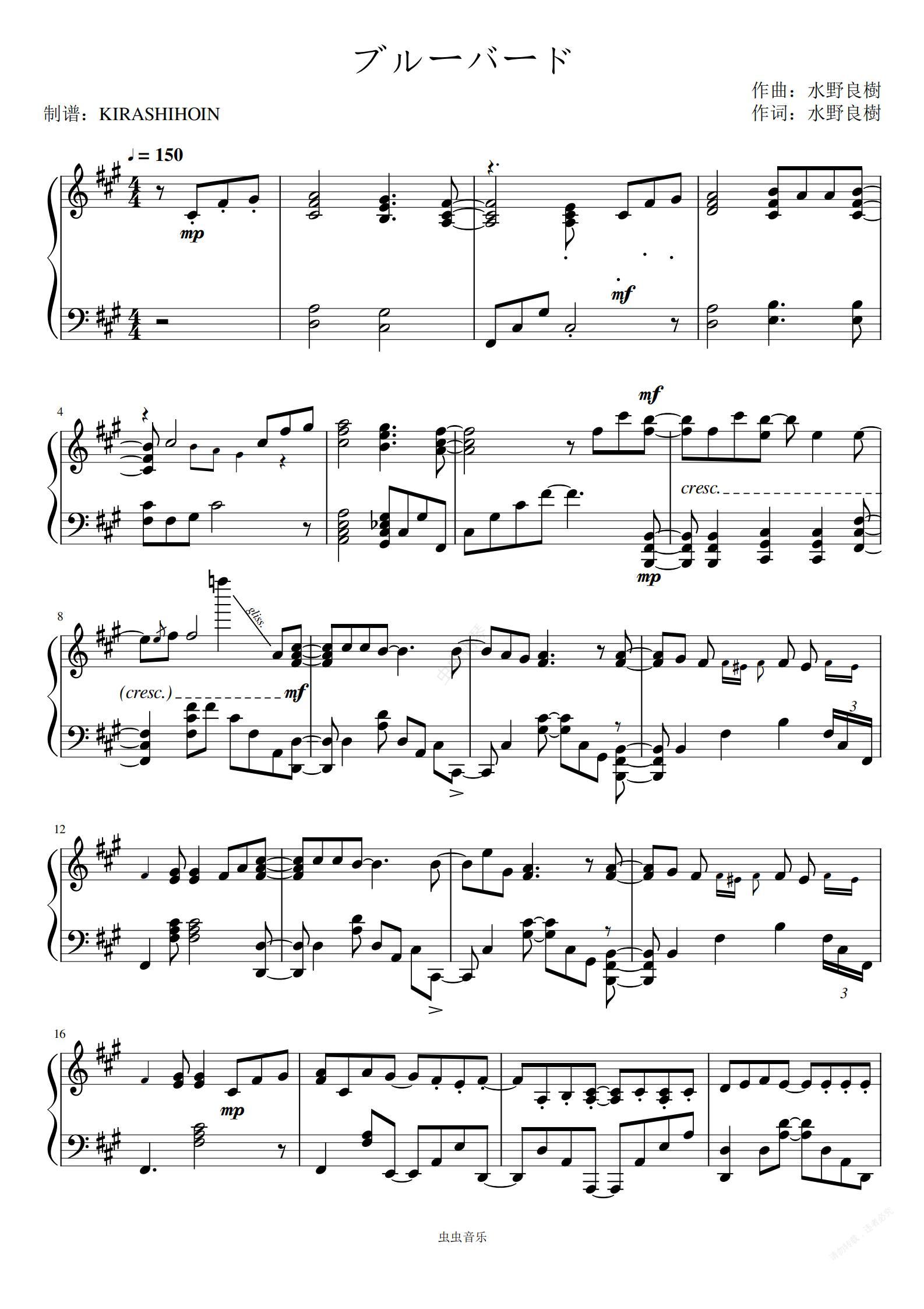 钢琴谱:青鸟/ブルーバード (《火影忍者 疾风传》OP)