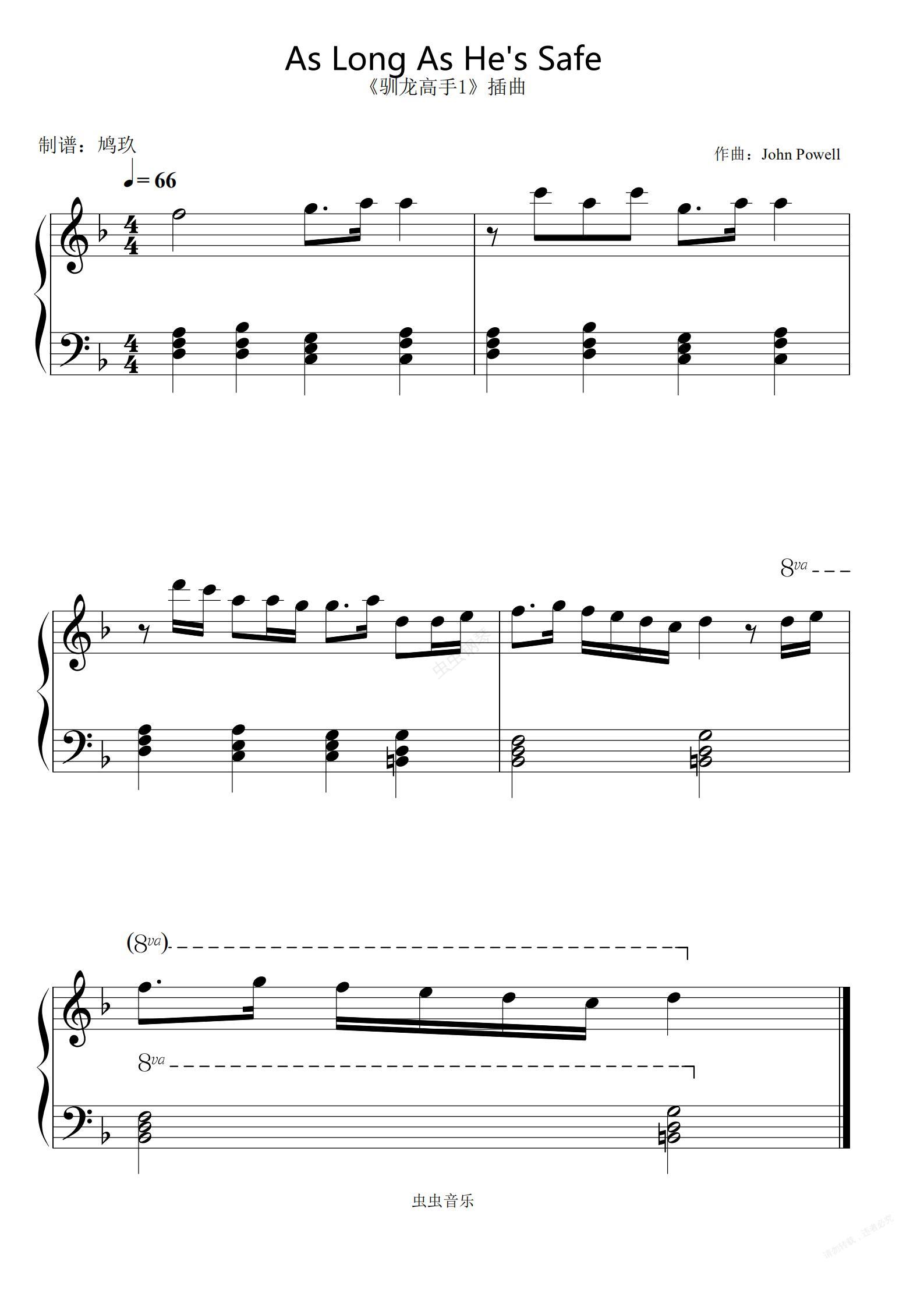 钢琴谱:驯龙高手As Long As He's Safe(小汤4版本)