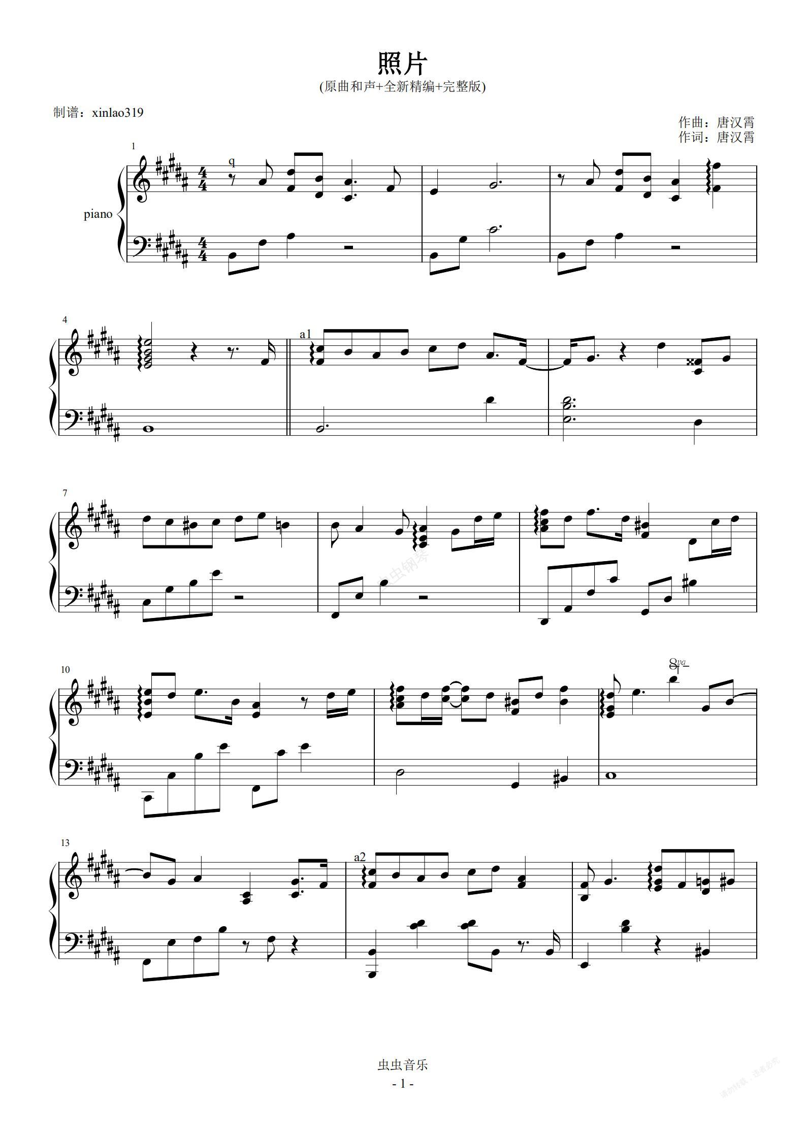 钢琴谱:B调-单依纯《照片》(原曲和声+全新精编+完整版)