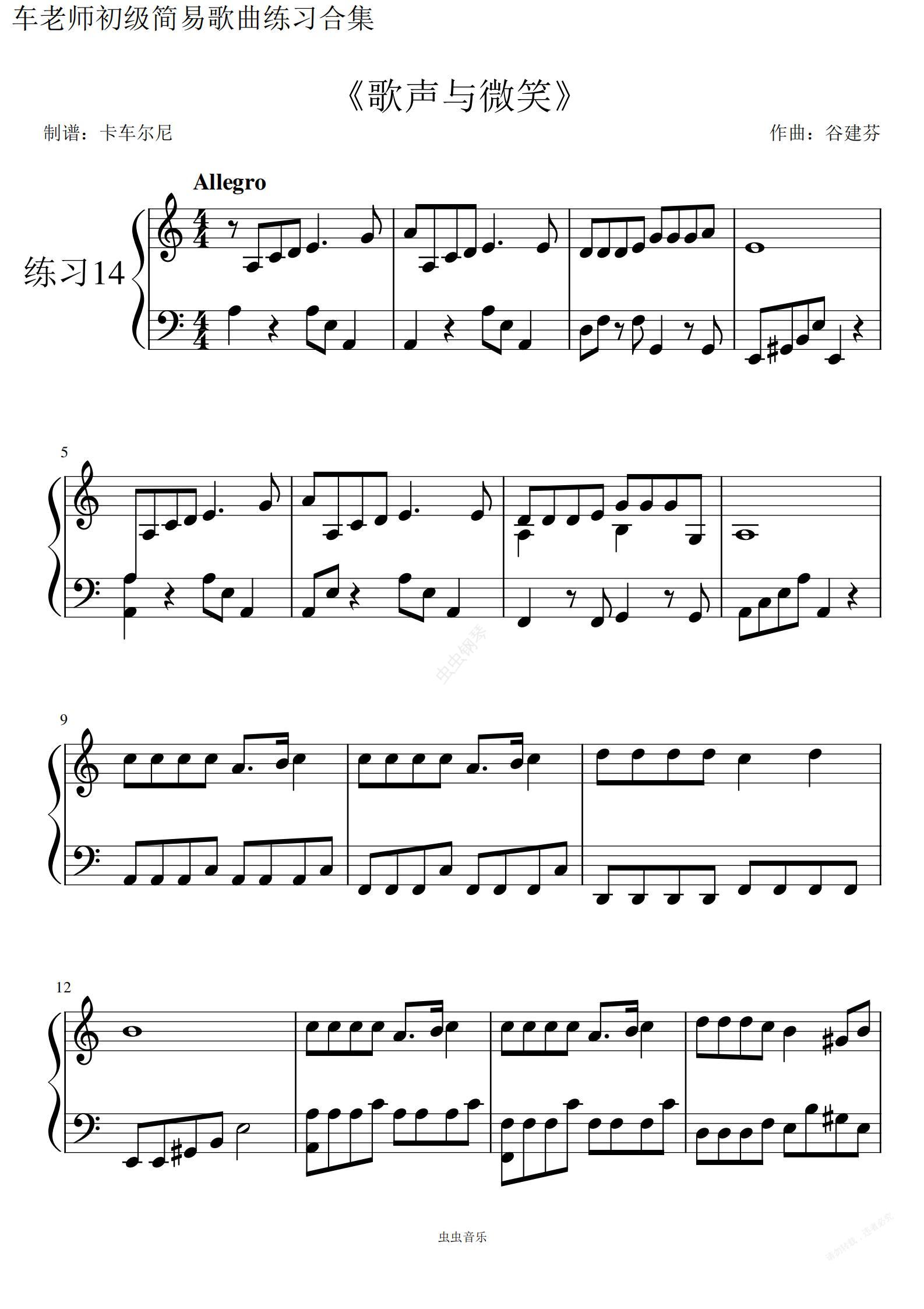 钢琴谱:简易练习 歌声与微笑