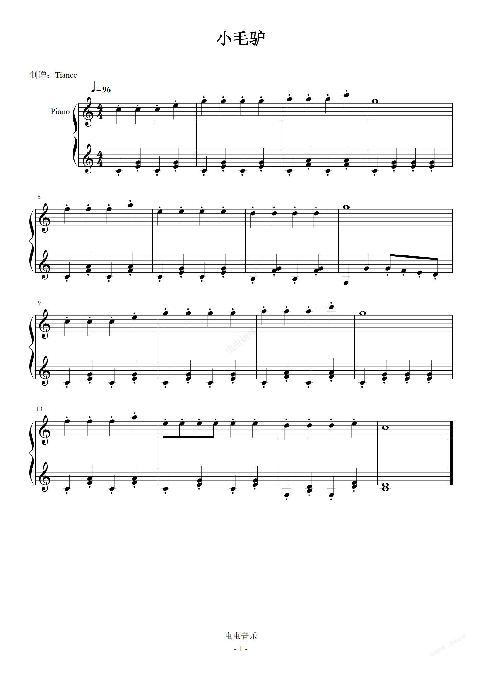 钢琴谱:《小毛驴》小汤3难度,跳音练习