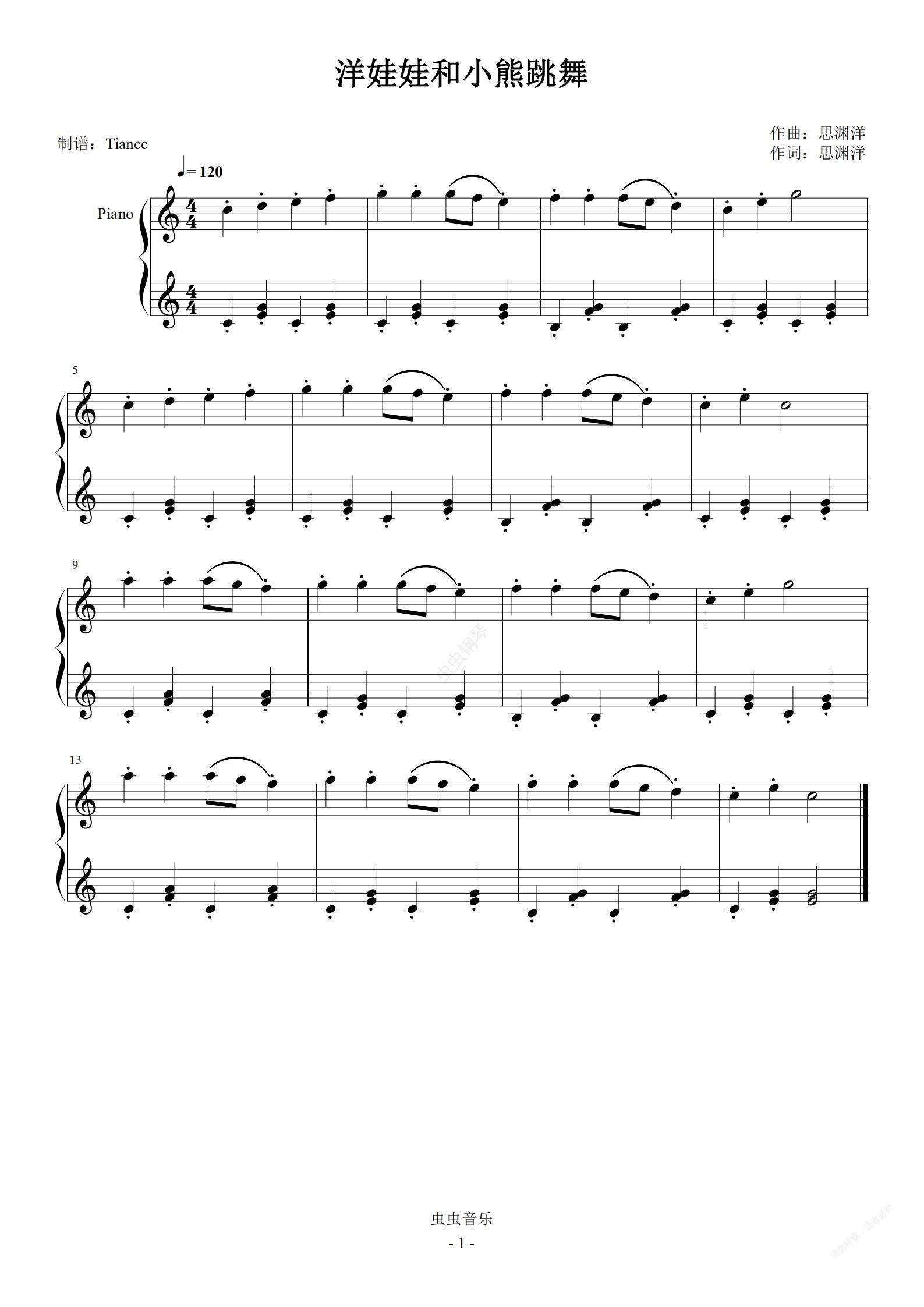 钢琴谱:《洋娃娃和小熊跳舞》小汤3难度,跳音练习