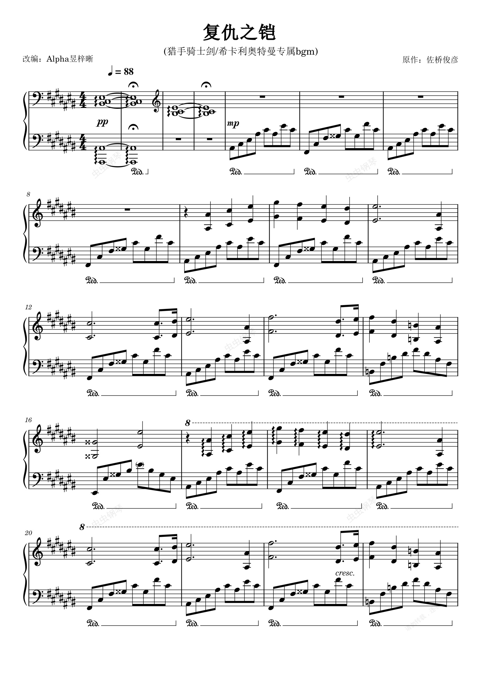 钢琴谱:复仇之铠(猎手骑士剑/希卡利奥特曼专属bgm)